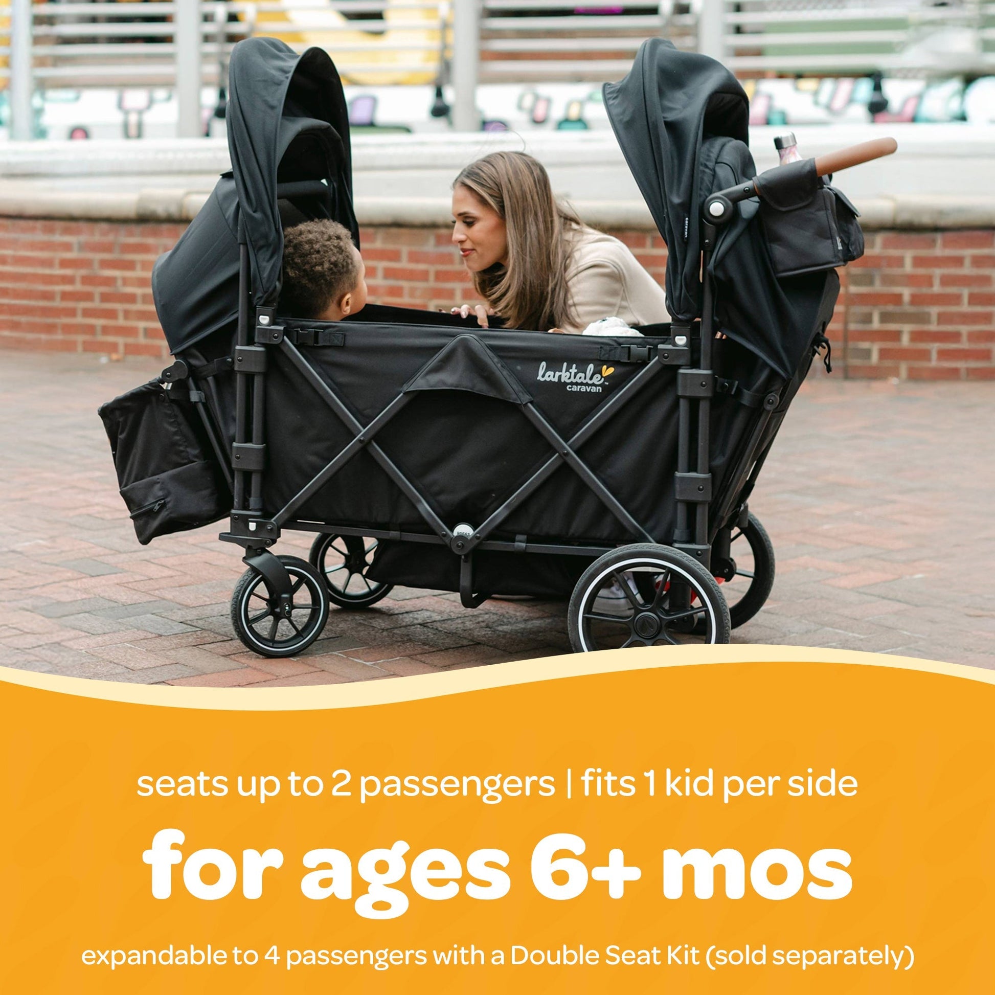 Introducing the Larktale caravan V3 Stroller/Wagon, a versatile and spacious solution designed to adapt to your family's growing needs. Starting as a comfortable two-seater for children aged 6 months and up, each seat supports up to 93 pounds, ensuring longevity as your children grow. For larger families or playdates, the caravan V3 can be expanded to accommodate up to four passengers with the addition of Double Seat Kits, sold separately. Parents with newborns can also utilize the optional car seat adapter to securely transport their infants.