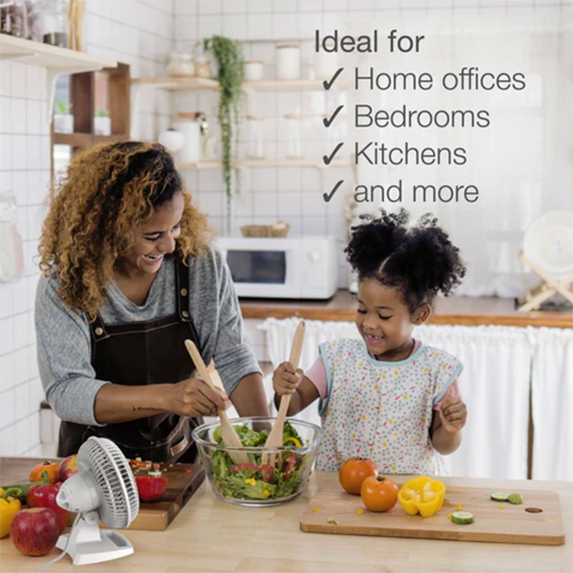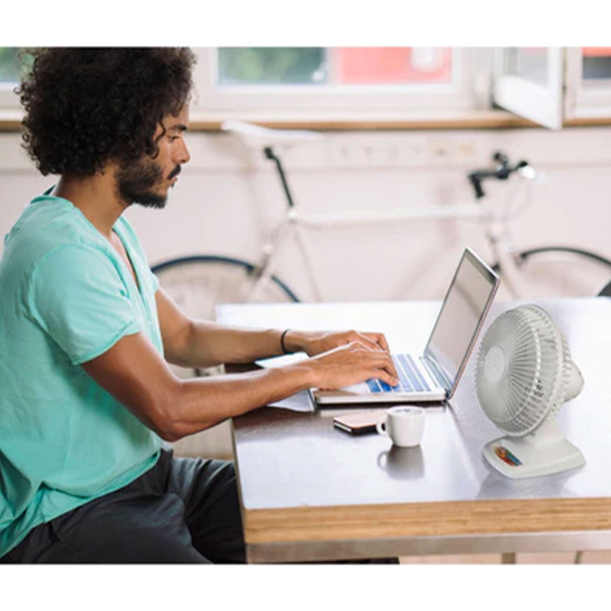 This 6 Inch 2002W 2 Speed Personal Portable Table Fan with Storage Tray from Lasko is the perfect solution for the heat. This compact, simple, no-tool fan provides excellent and refreshing air circulation in any small space, such as a desk, table, or any other flat surface, making it ideal for personal use in the office or home.