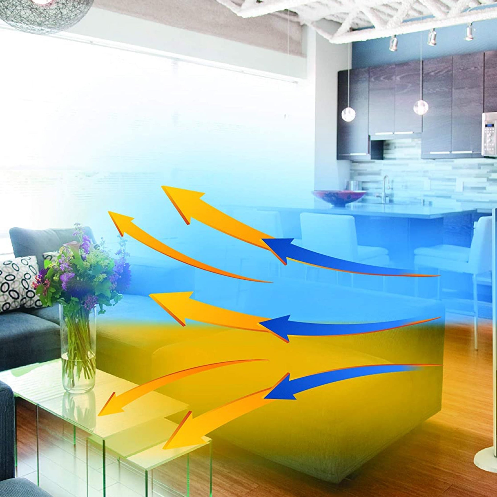 These units feature a high-reaching tower design for maximum air delivery with a small footprint, so it won’t take up much space. Create gentle breezes with 4 quiet fan speeds (high, medium, low, and super low), bask in soothing warmth with 3 heat settings (high, medium, and low), plus one heater/fan combination mode which simultaneously activates high heat and super low fan.