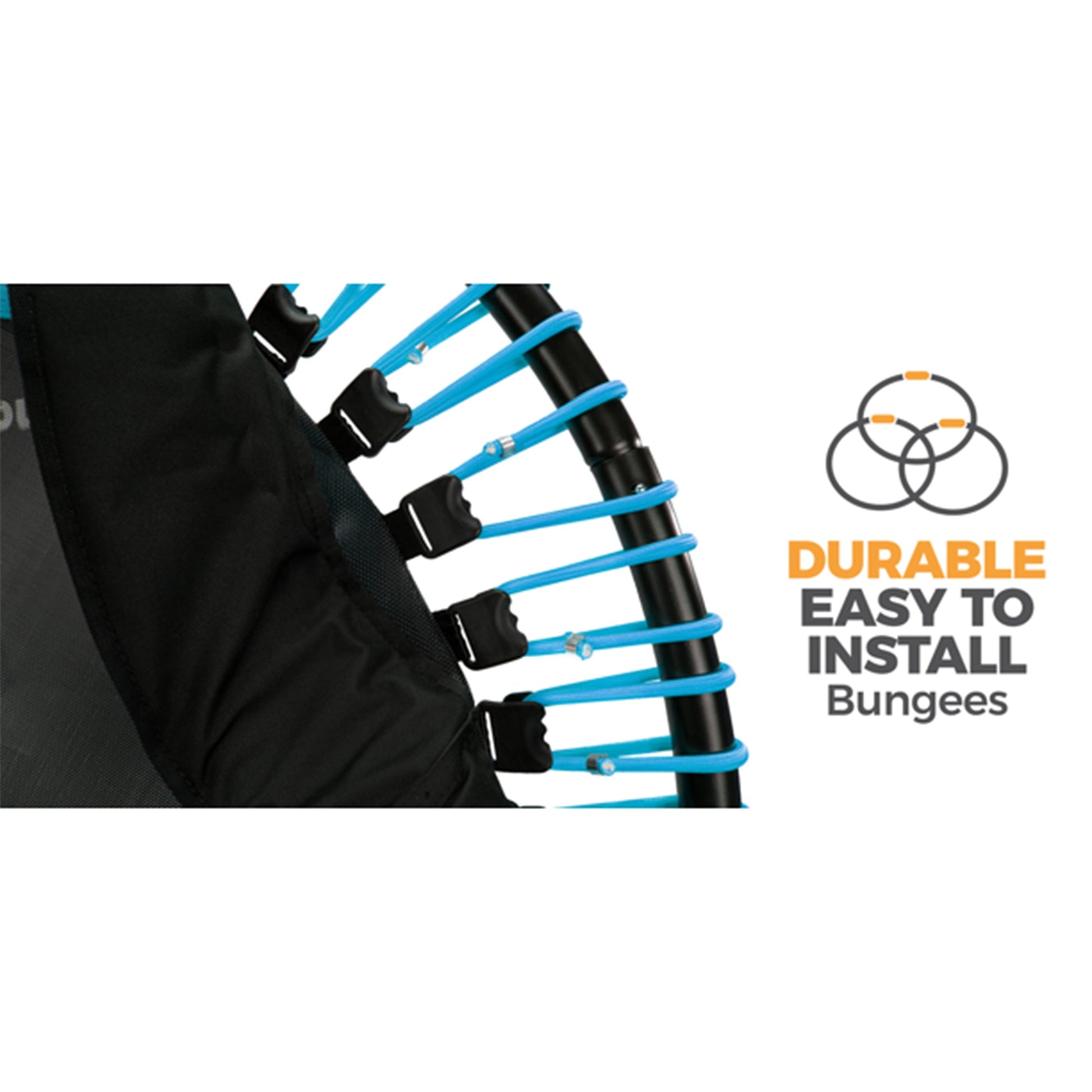 - Features quiet bungees with a firm bounce for solid jumps without distracting noise