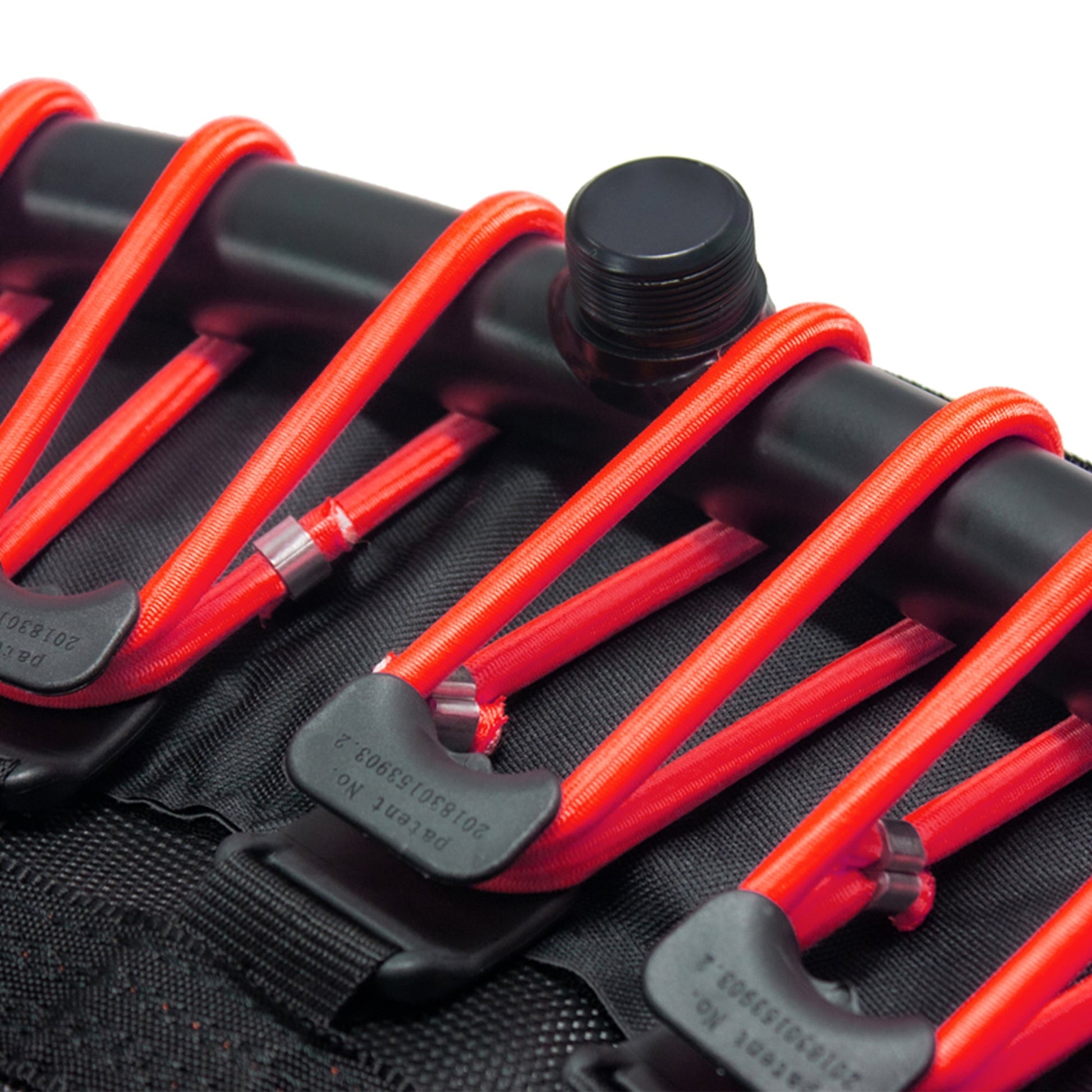 - Attach the bar to any 2 trampoline legs for simple assembly by slipping around the legs and reattaching the legs
