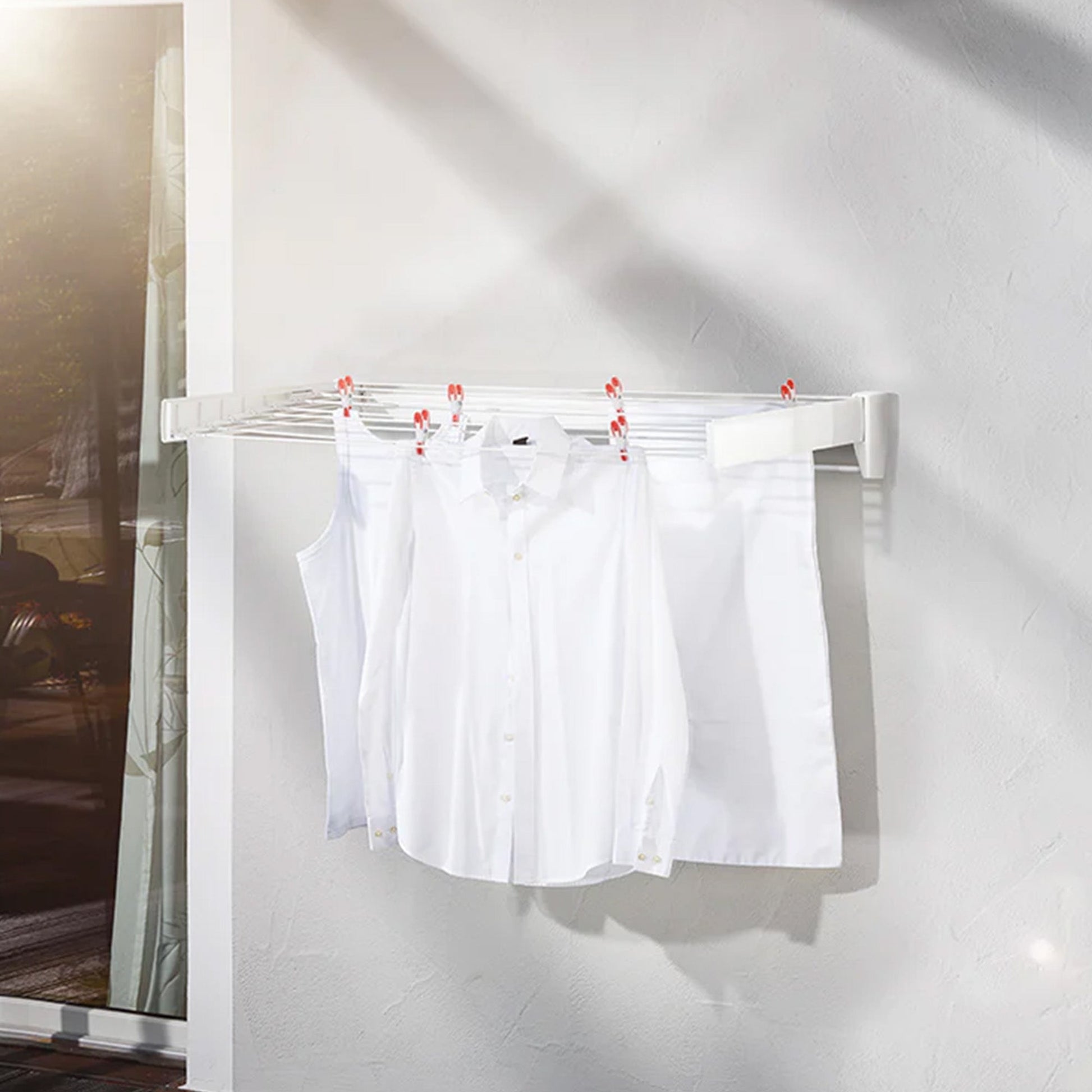Designed with your convenience in mind, the Telefix 100 is incredibly easy to install and use. The included fittings make the setup a breeze, allowing you to quickly transform your wall into a functional and organized drying station. And when not in use, the collapsible design allows the rack to fold away neatly, freeing up valuable floor space in your laundry room or bathroom.