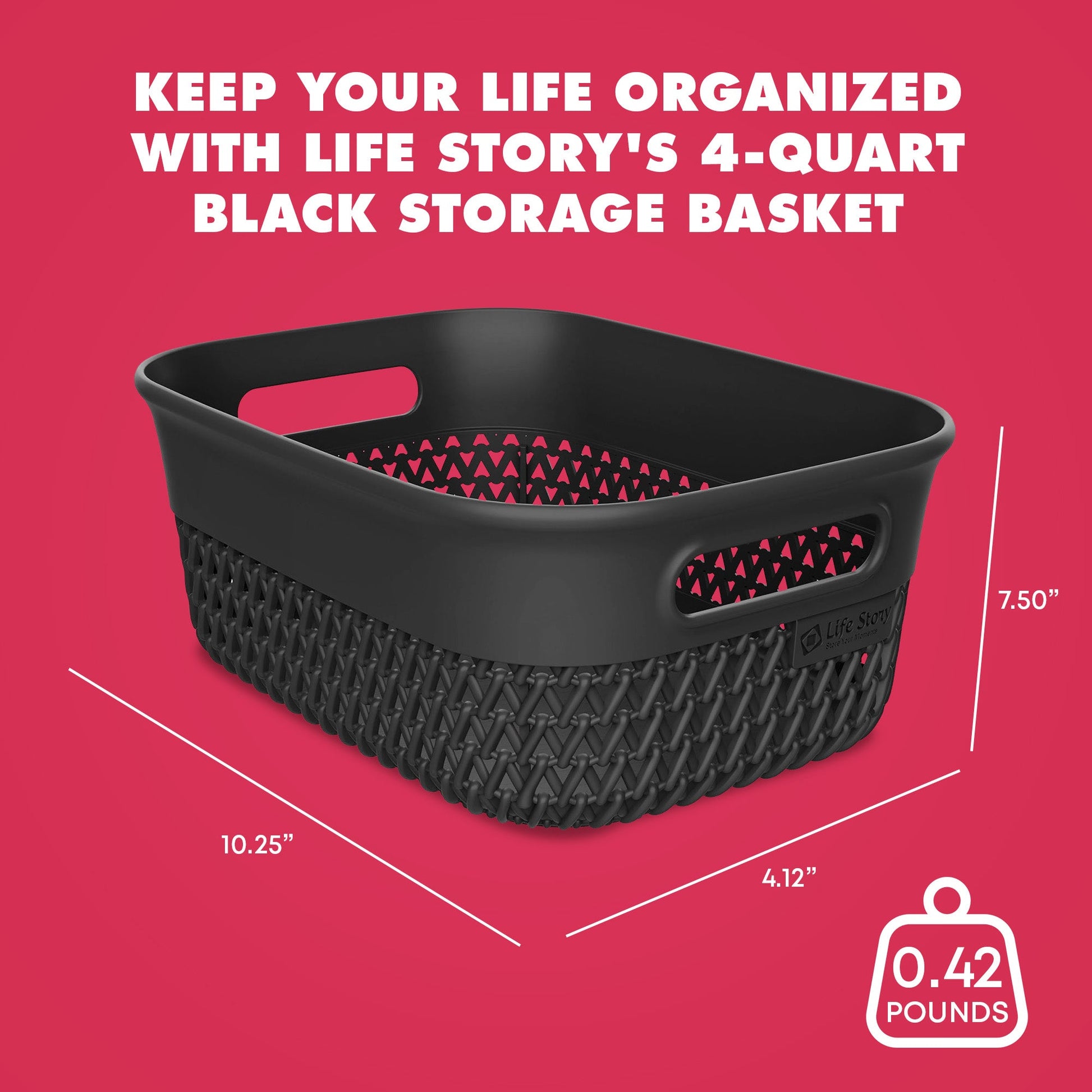 Life Story 4 Qt Decorative Storage Basket, Small Plastic Home Organizer, Black