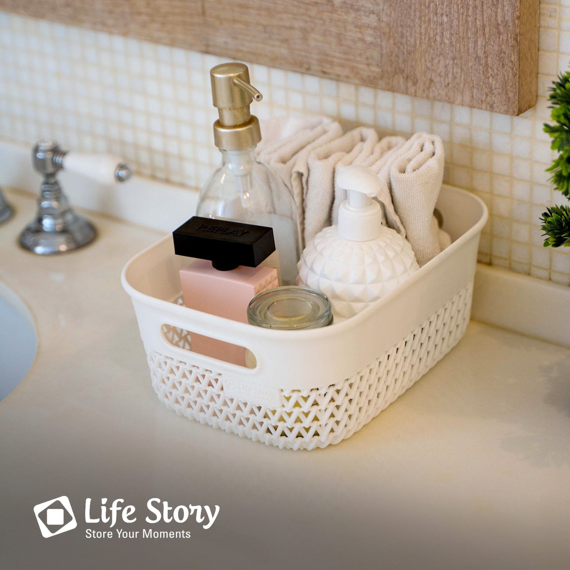 Life Story 4 Qt Decorative Storage Basket, Small Plastic Home Organizer, White