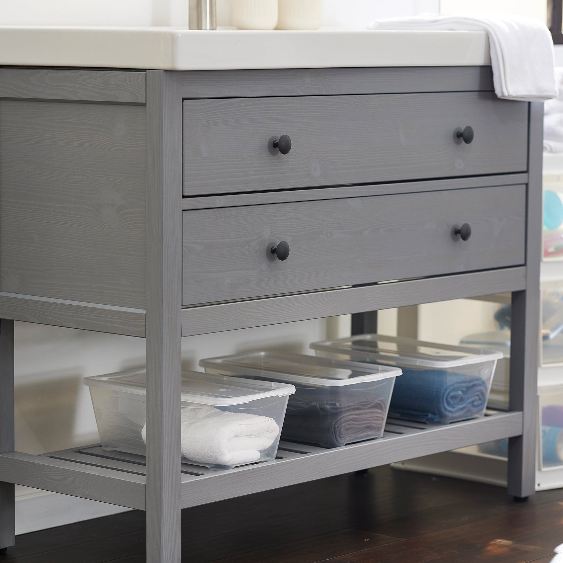 - Stack each container on top of the other to maximize storage space in closets