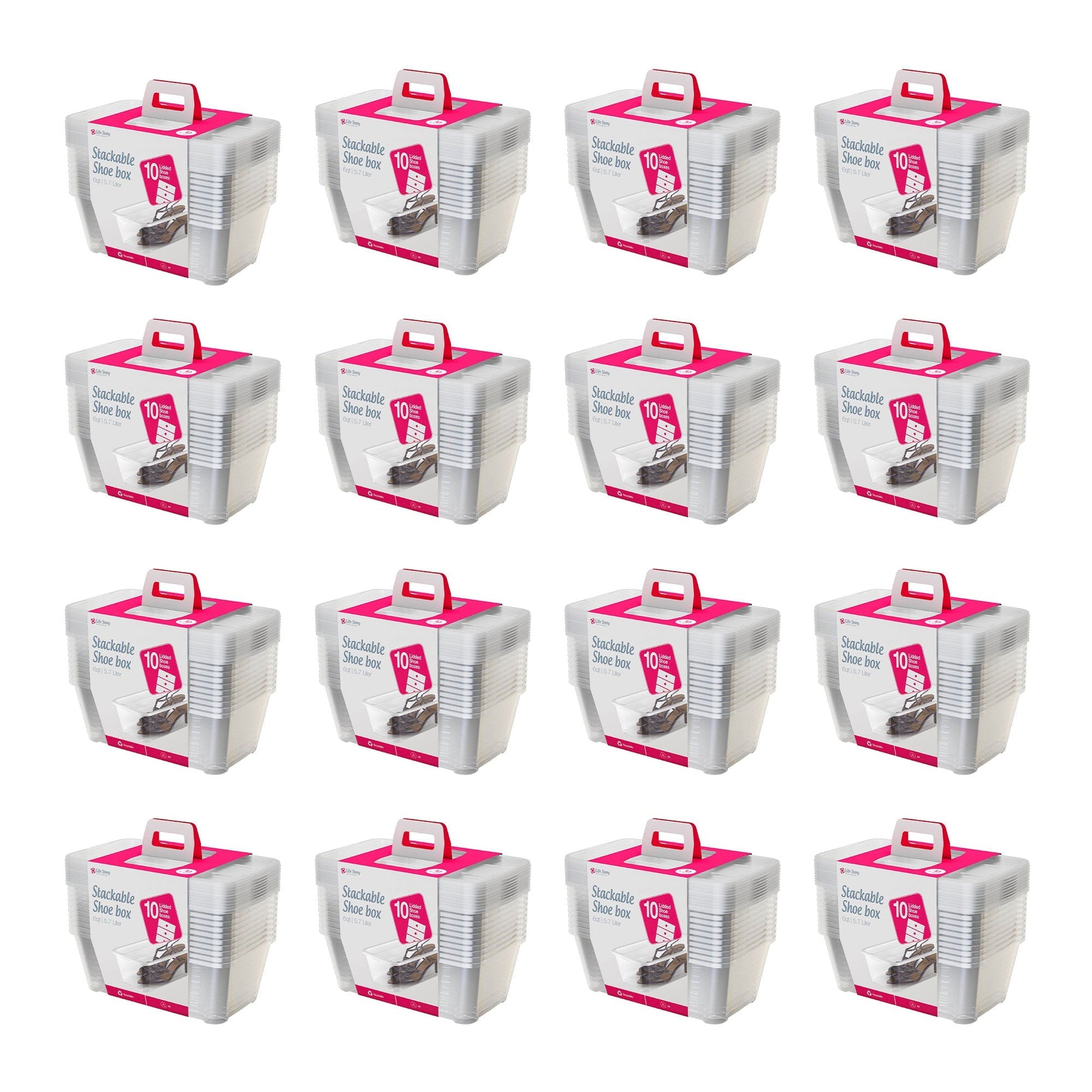 Life Story 6L Shoe & Closet Storage Box Stacking Containers, Clear (160 Pack)