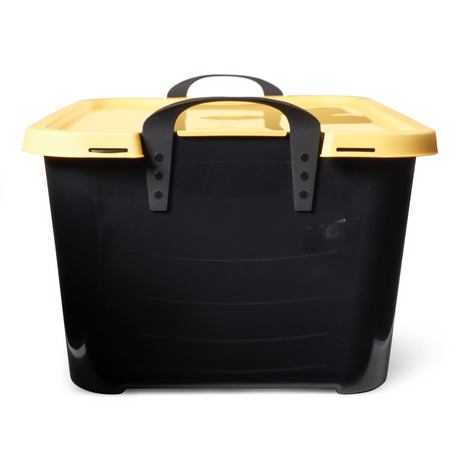 With a black and yellow color scheme, this 55-quart bin is a great fit for all kinds of garages, storage rooms, and living spaces.