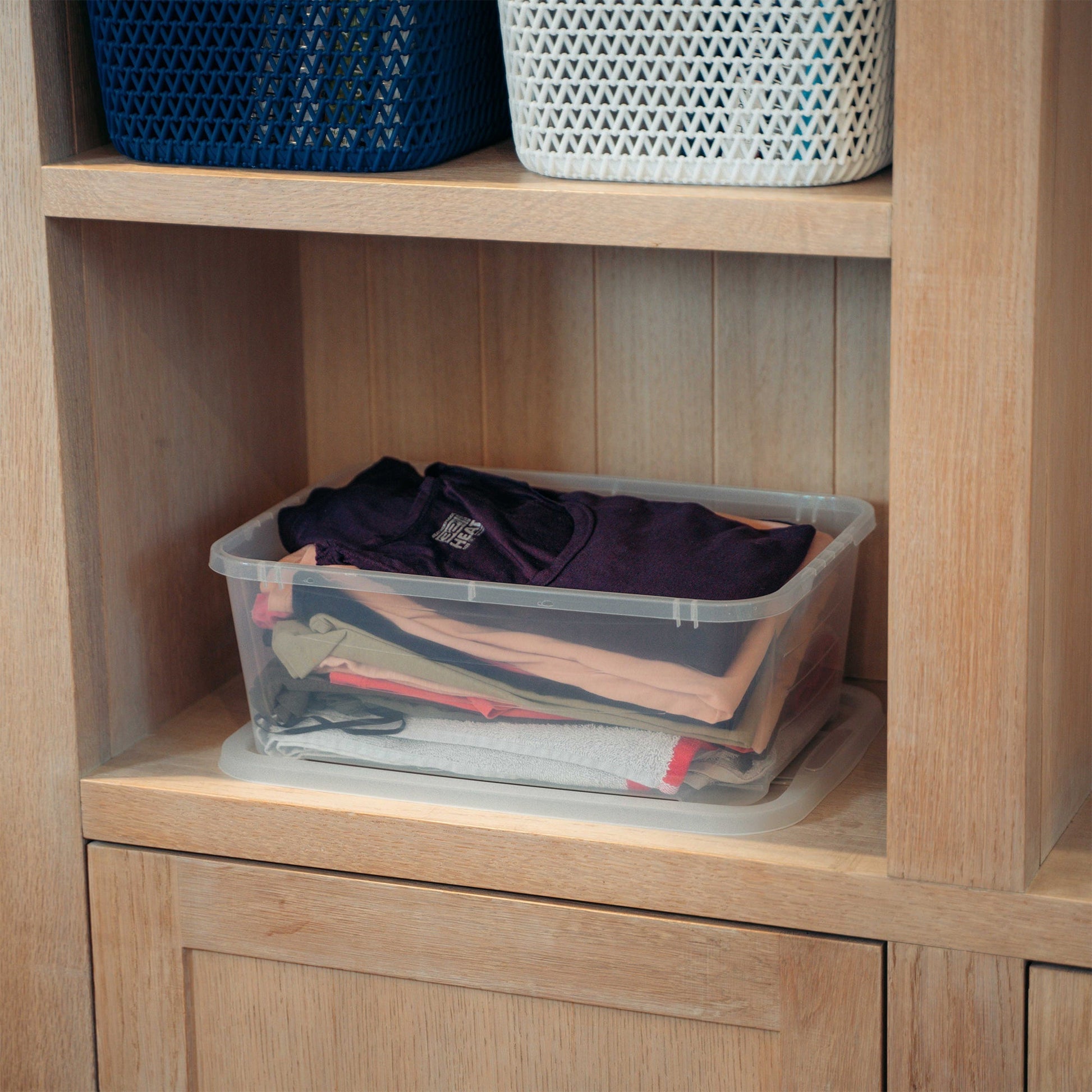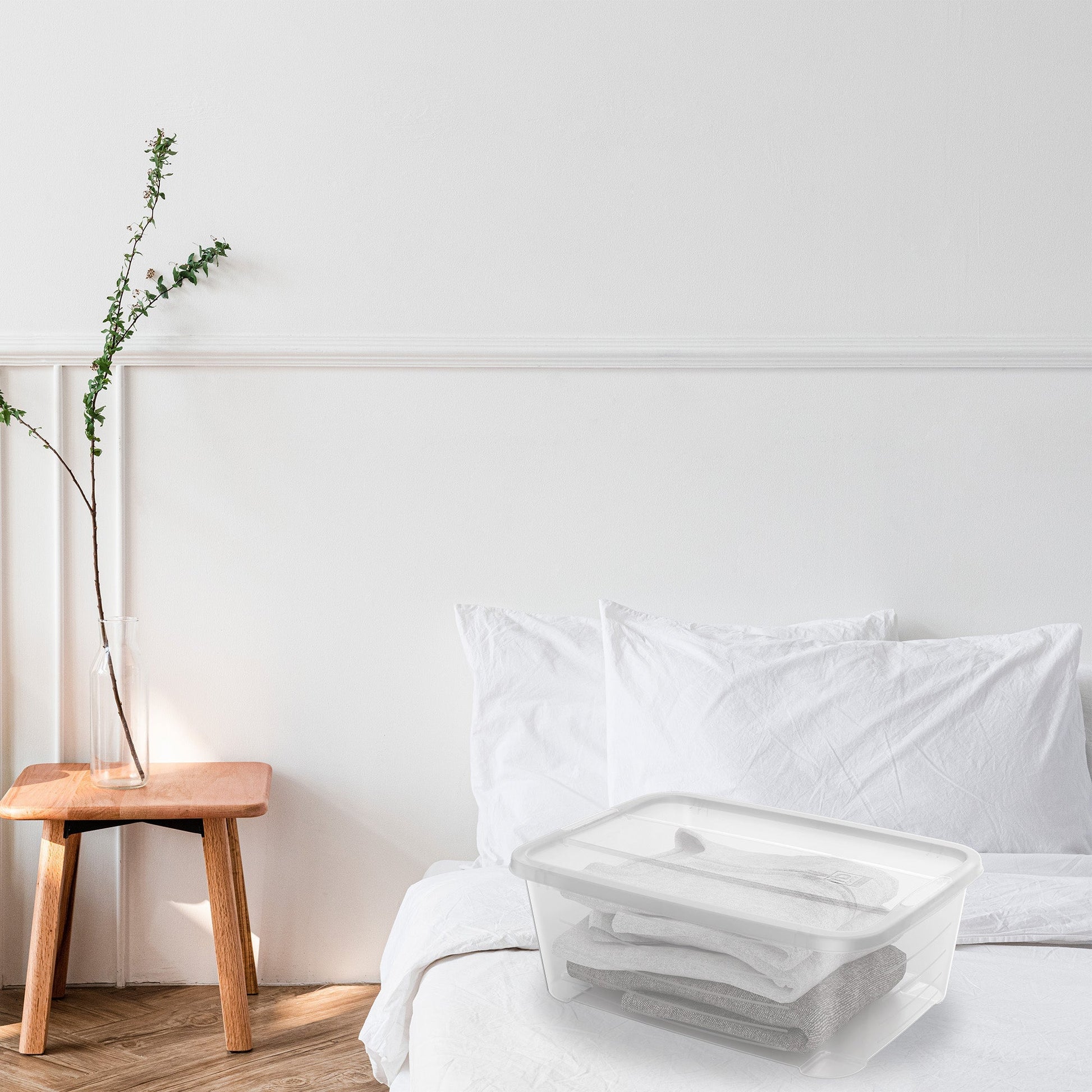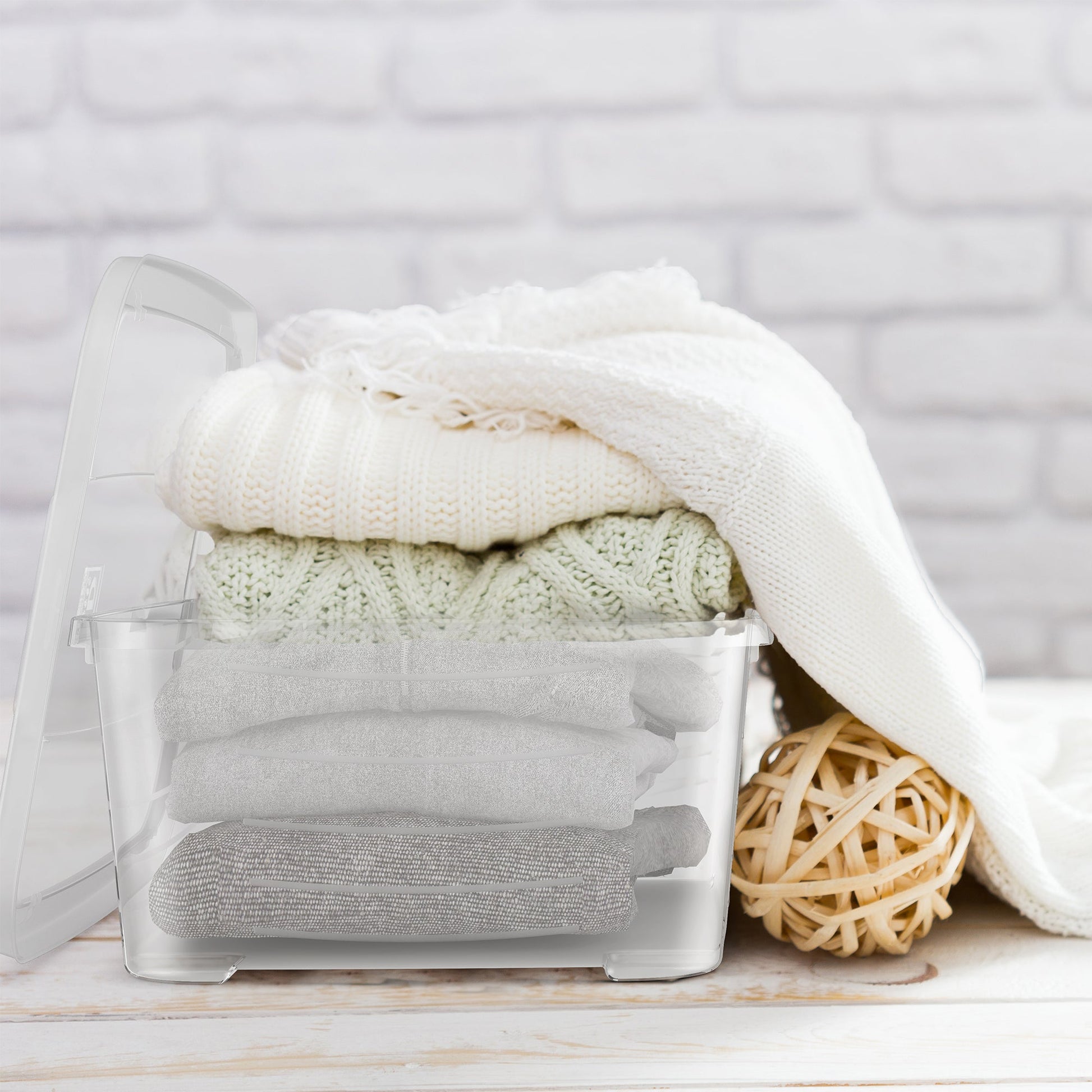 Perfect for shoes, clothes, sweaters, accessories, toys, craft supplies, and other household essentials, this versatile box fits seamlessly into closets, cabinets, or under the bed. Its compact yet spacious 12-quart capacity makes it ideal for organizing any room in your home, from bedrooms and living spaces to garages, laundry rooms, and offices.