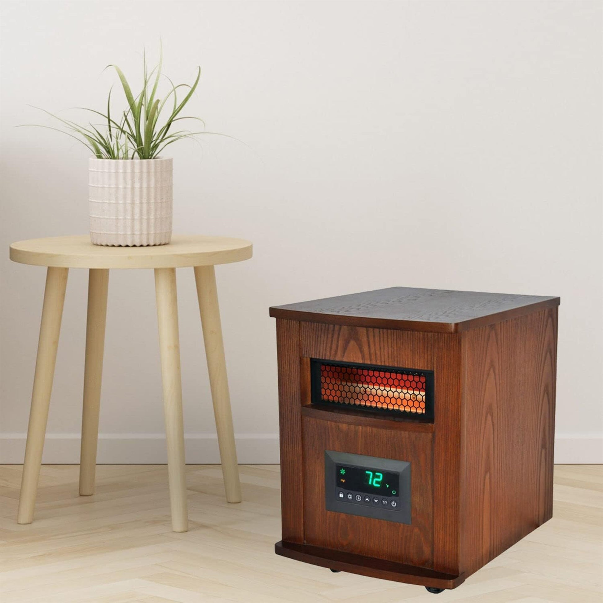 Enjoy the warmth and comfort of your living room without ever having to light a fire. The LifeSmart Electric Space Heater is an infrared heater that supplements your house's heating while cutting your utility costs. Designed with a dark oak finish, this space heater will add a bit of class to your home.