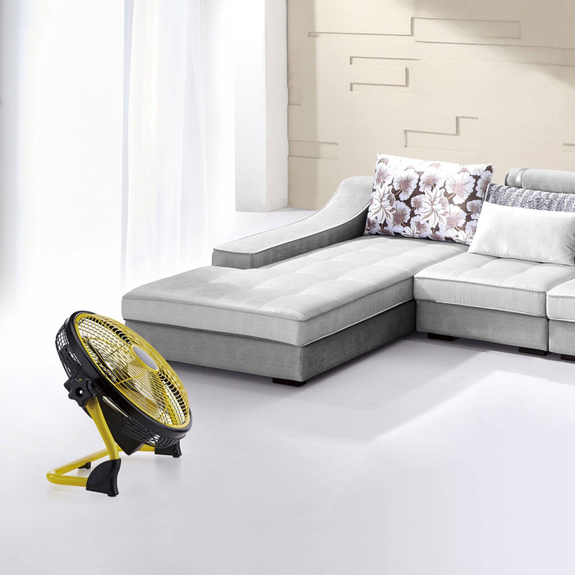 Achieve the perfect airflow no matter where you go with the Lifesmart FGD-12C 12-Inch Rechargeable Battery-Powdered Variable Speed Fan in Yellow.