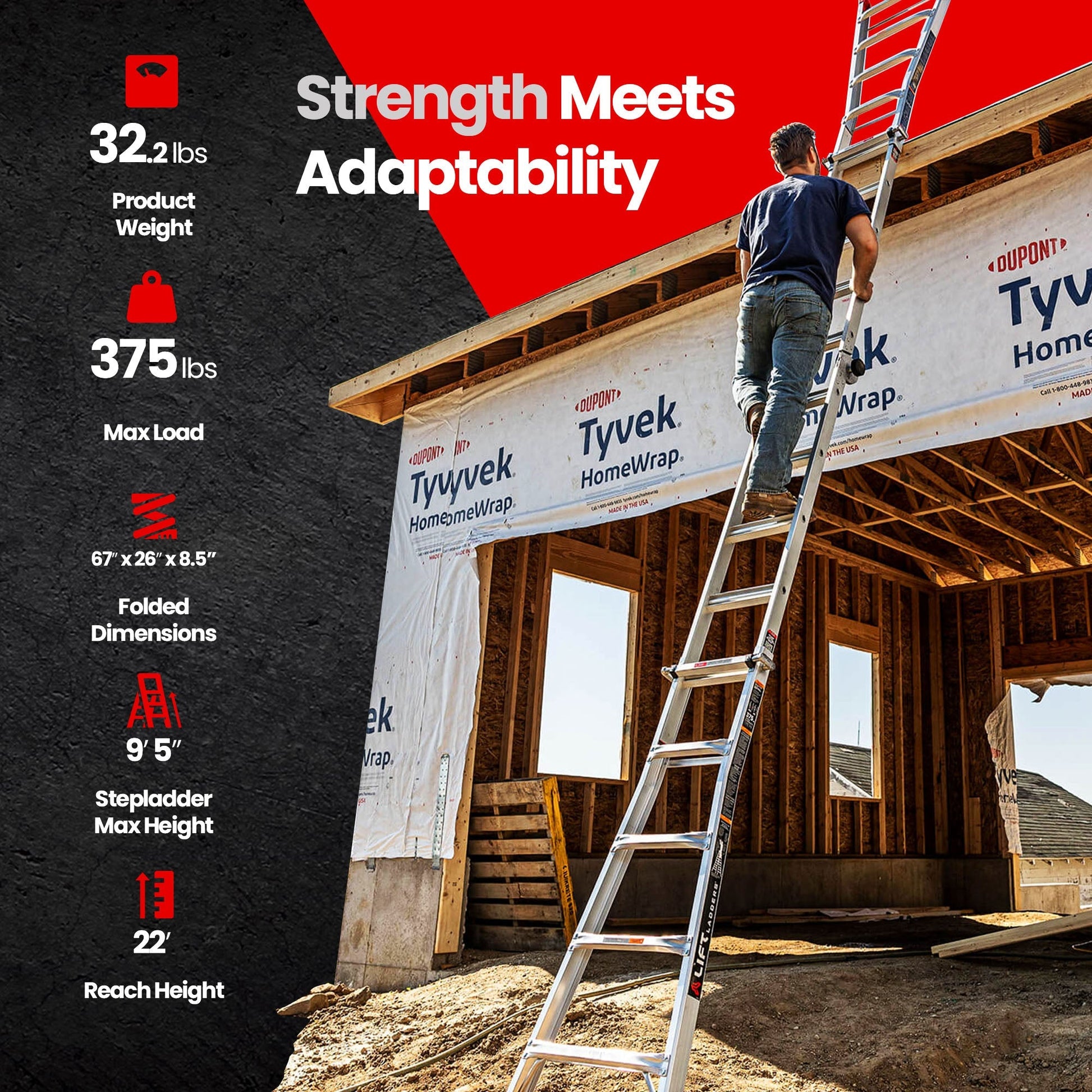 Discover what it means to climb confidently when you say goodbye to wobbling uncertainty and realize that this is reliability redefined. Whether you're a DIY enthusiast or a seasoned professional, the 22-Foot Durable Multi-Position Ladder from Lift Ladders elevates every project, providing unmatched support and adaptability.