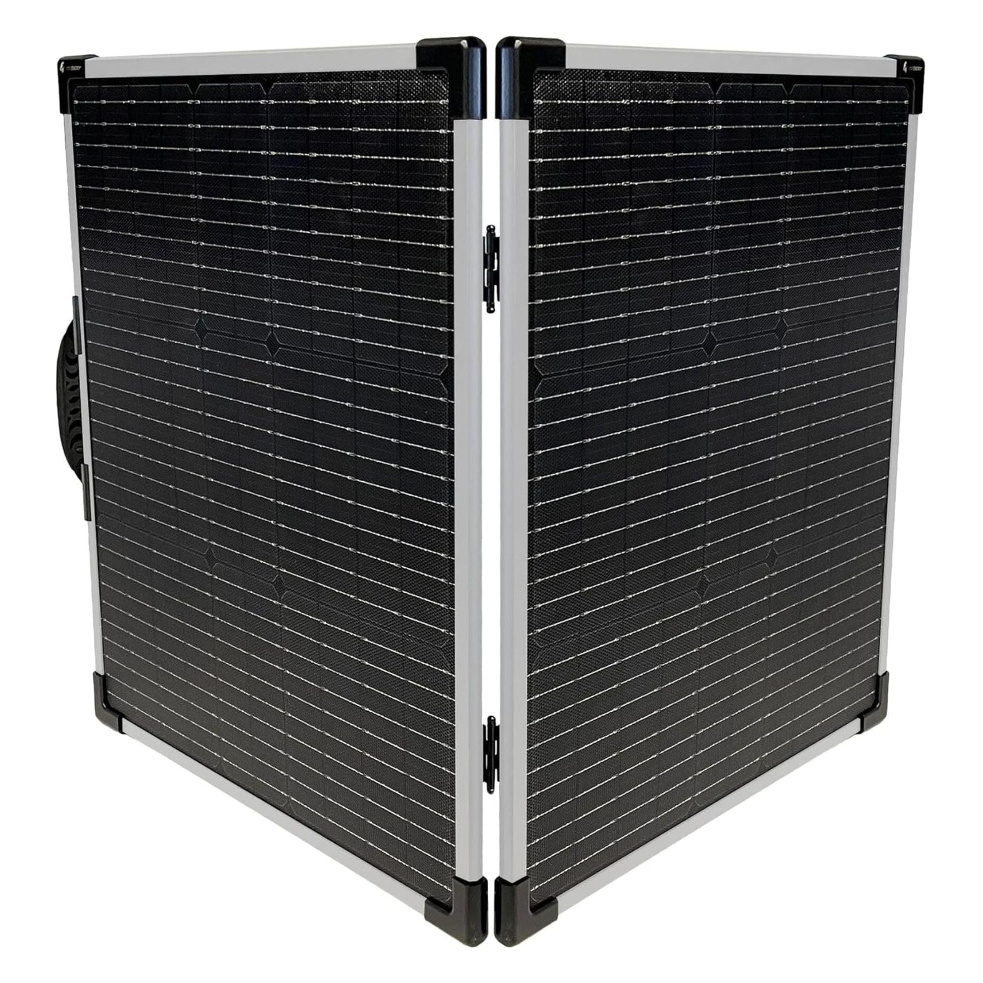 - 100-watt 12V foldable monocrystalline solar panel designed to recharge Lion Energy power stations and 12V battery systems
