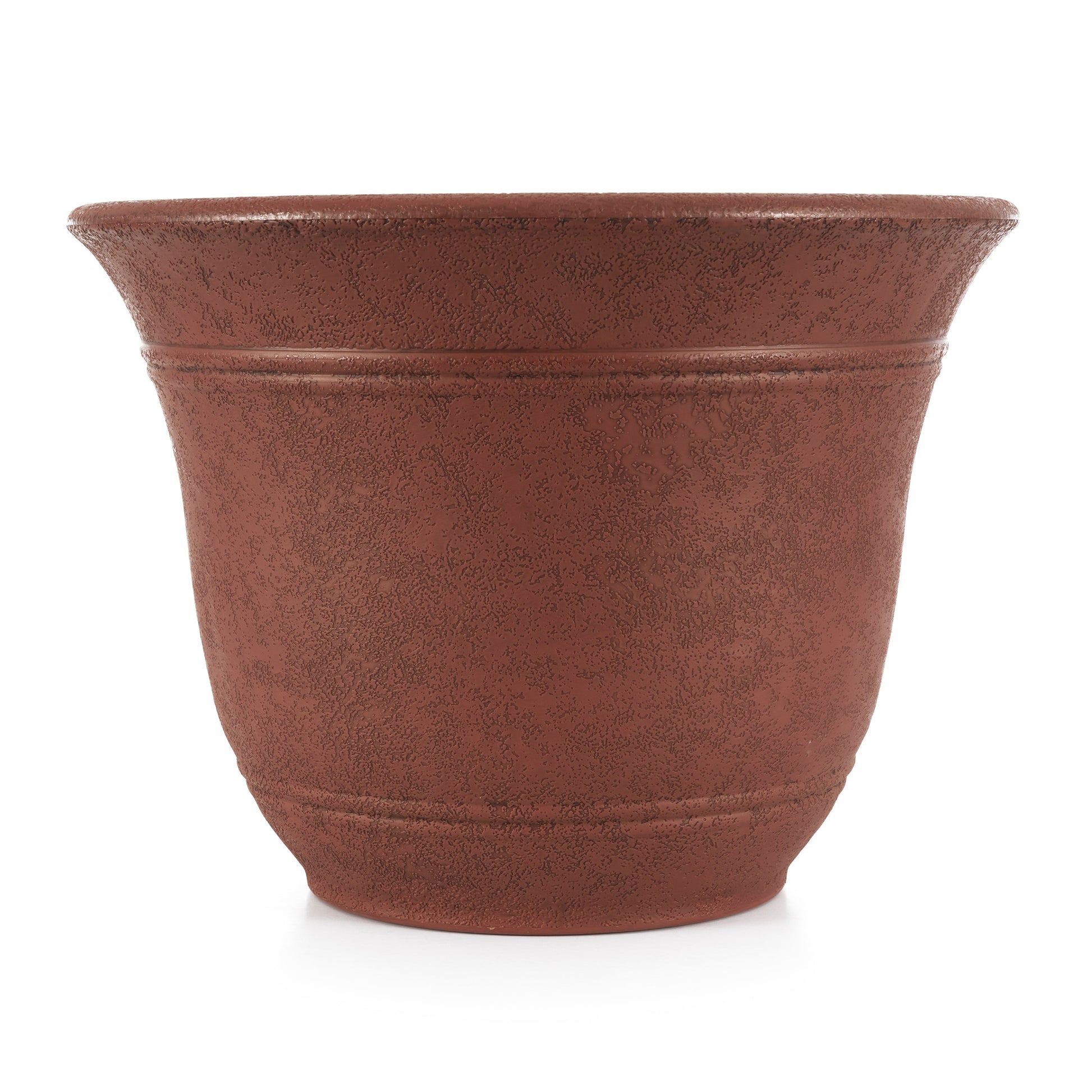 Listo SRA13001P05 13-Inch Round Outdoor Plastic Sierra Planter, Rustic Redstone