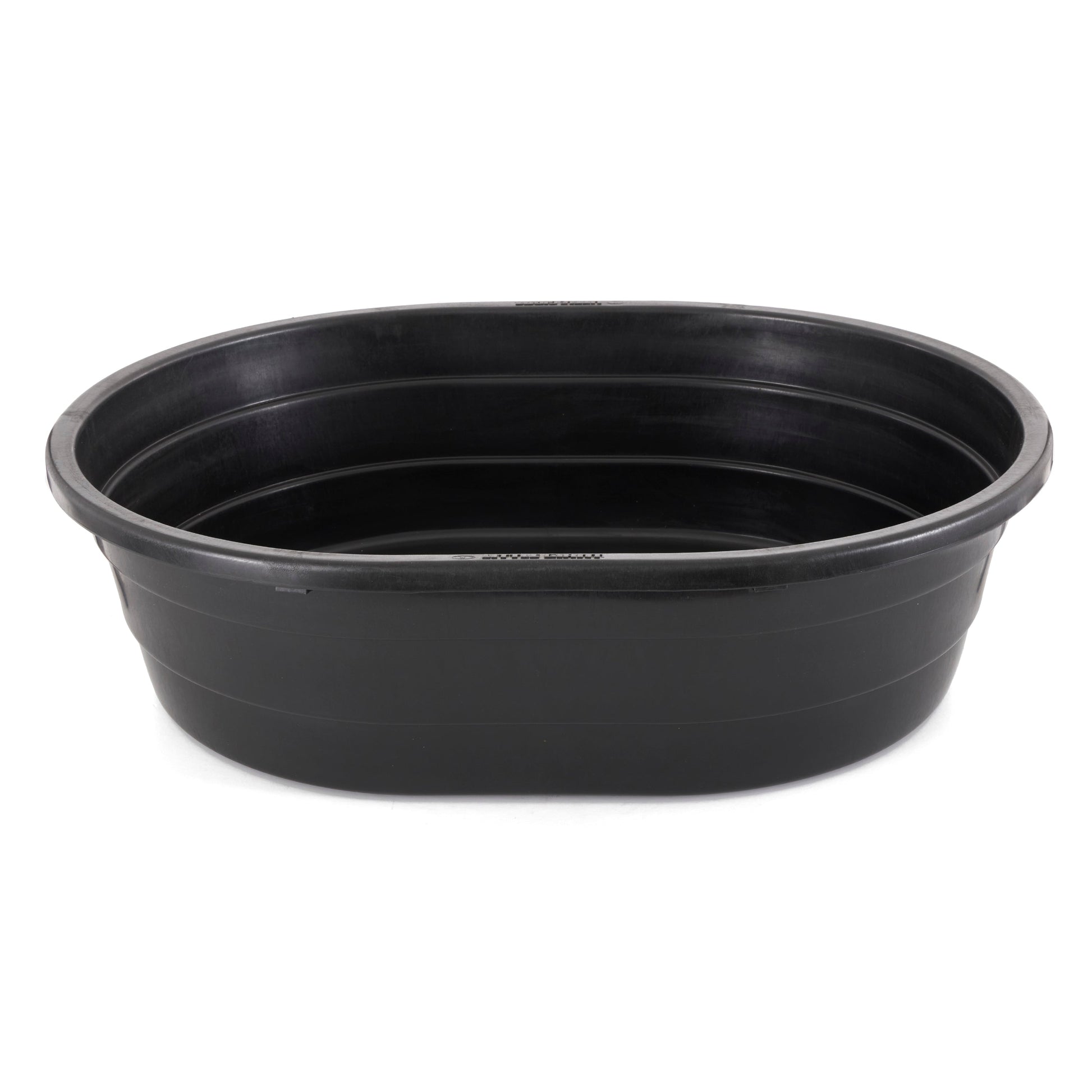 These stock water tanks hold up to 15 gallons, ideal for a single horse or herd of sheep. Molded from thick poly plastic with an oval shape, the farm water trough is lightweight and durable, perfect for use around the farm, yard, or home. A 3/4-inch drain plug allows you to connect a garden hose to the frame for easy filling and draining as desired; the drain plug is not included (sold separately). Not just for watering, the plastic stock tub is also perfect for use as a feed bin, chick brooder, hay tub, or storage.