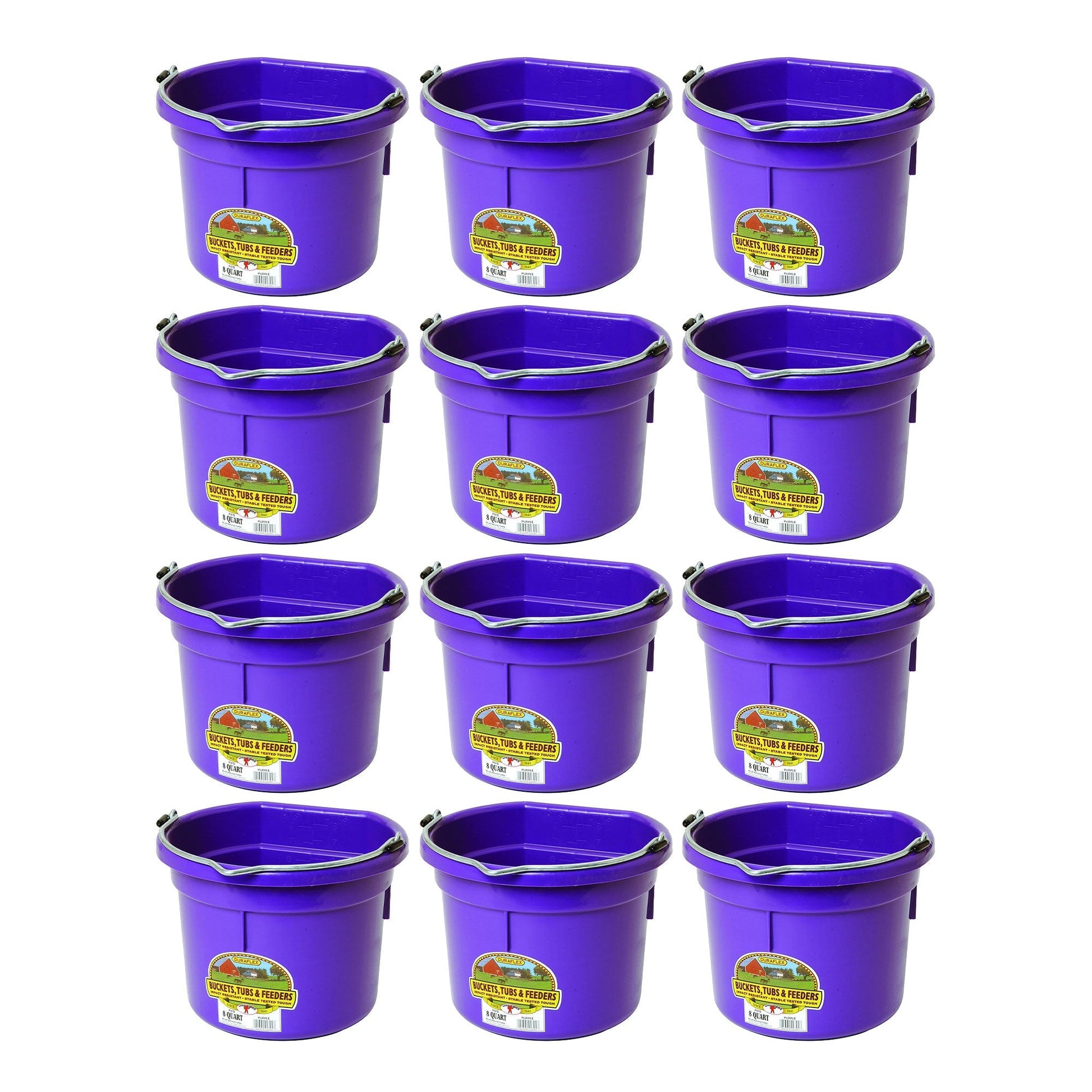 Little Giant 2 Gallon All Purpose Flat Back Plastic Bucket, Purple, (12 Pack)