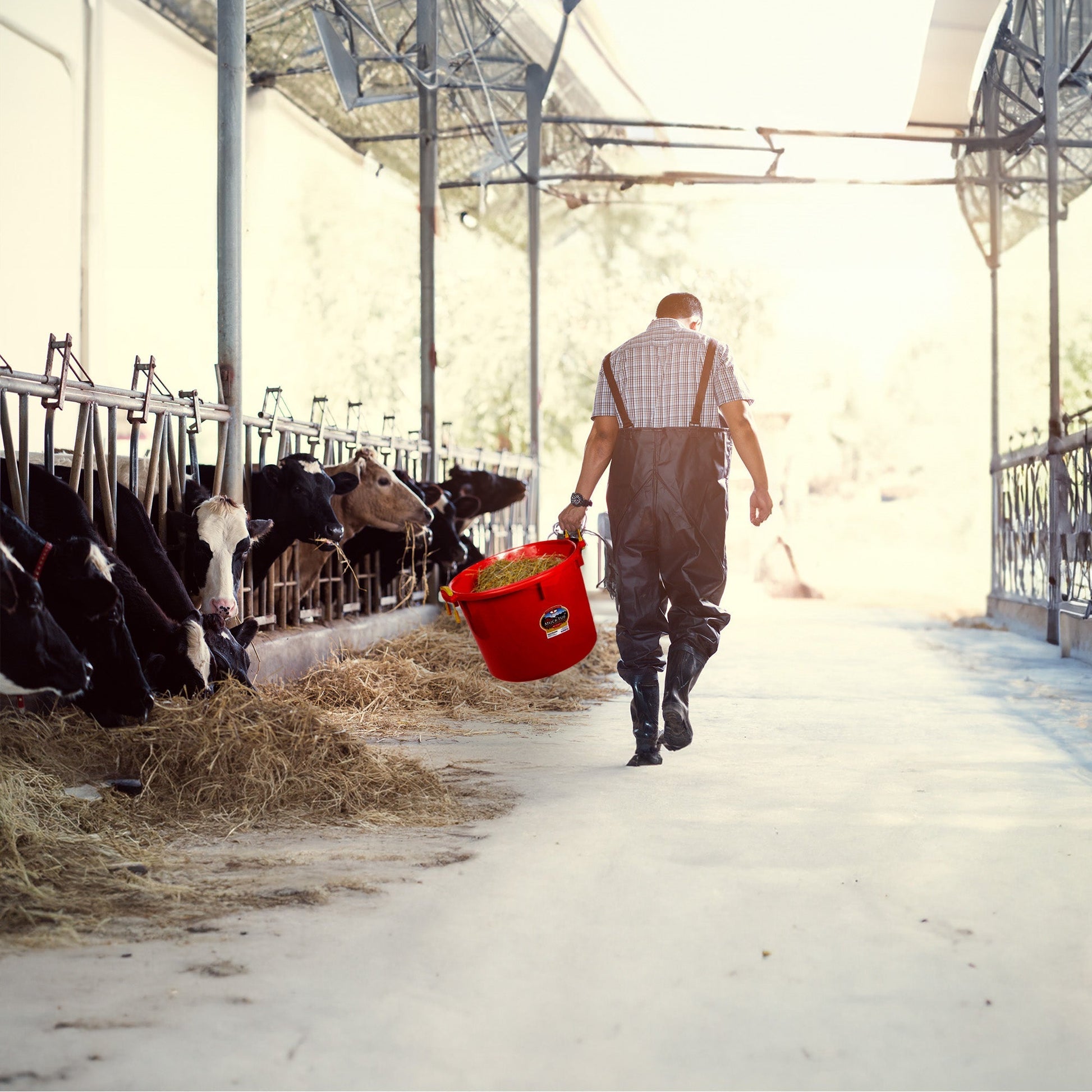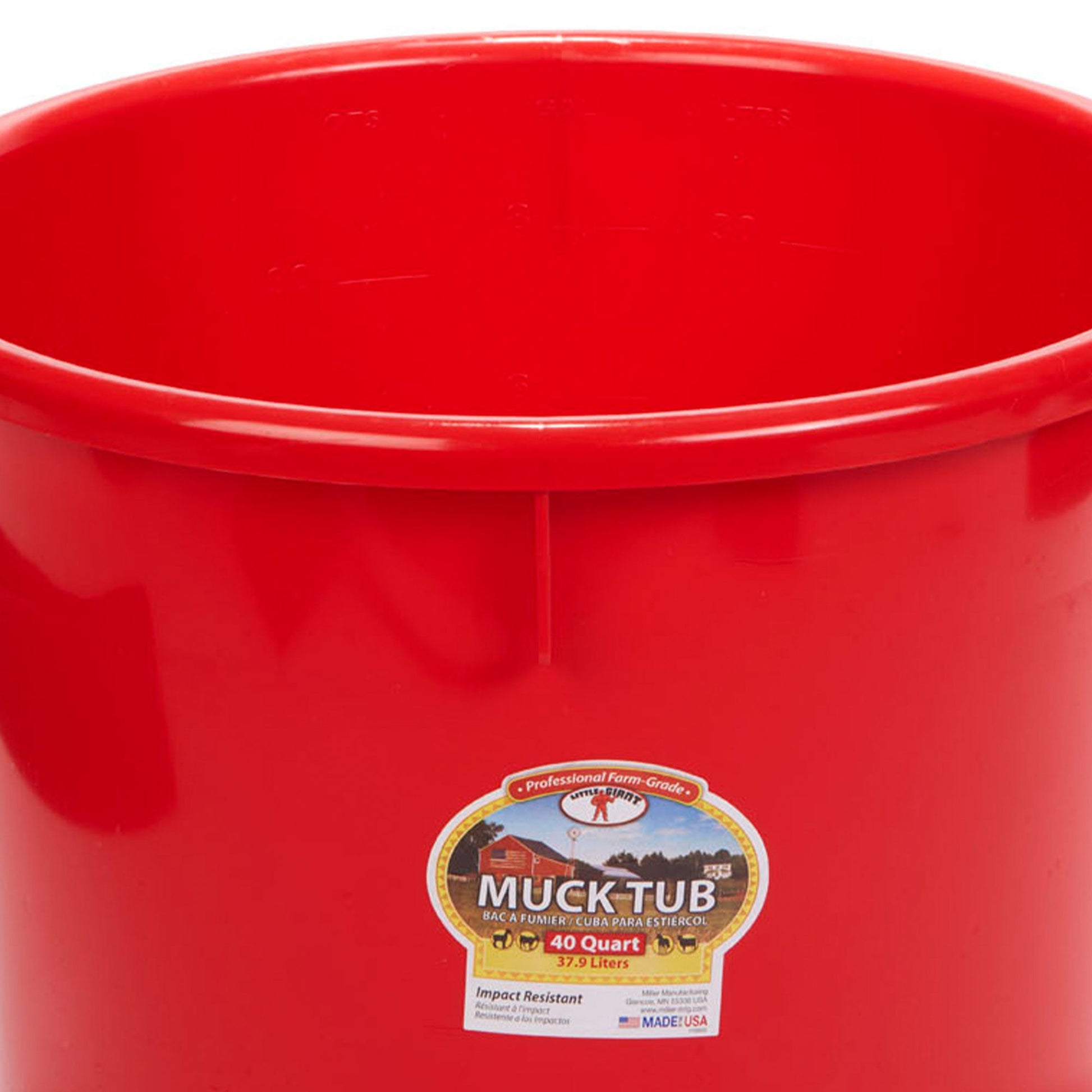 - Multi-purpose 40-quart plastic tote bucket ideal for mucking, barn cleanup, and gardening