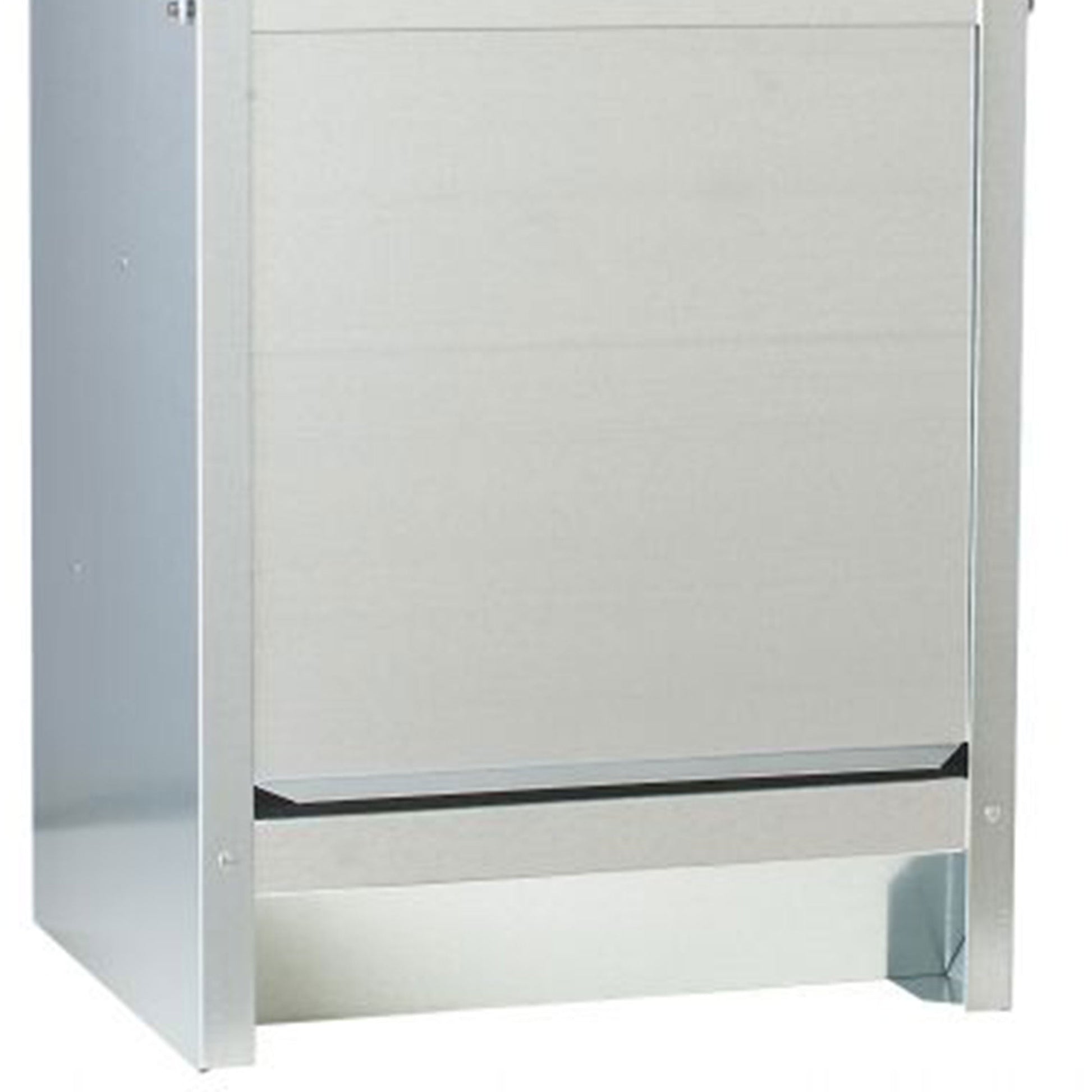 You and your dog never had this easy. Safely store dry dog food and feed it from the same chew-proof container. The Chow Hound Automatic Dog Feeder is manufactured from tough galvanized steel for durability and rust resistance. The magnetized door stays shut until your dog nudges it open, keeping unwanted pests out. A specially angled chute provides a steady food flow on demand. Food stays fresh, dry, and pest free. The feeder can be mounted on a wall by the backside keyholes or frame (not included). The Automatic Pet Feeder comes fully assembled and can hold 25 pounds of dry dog food.