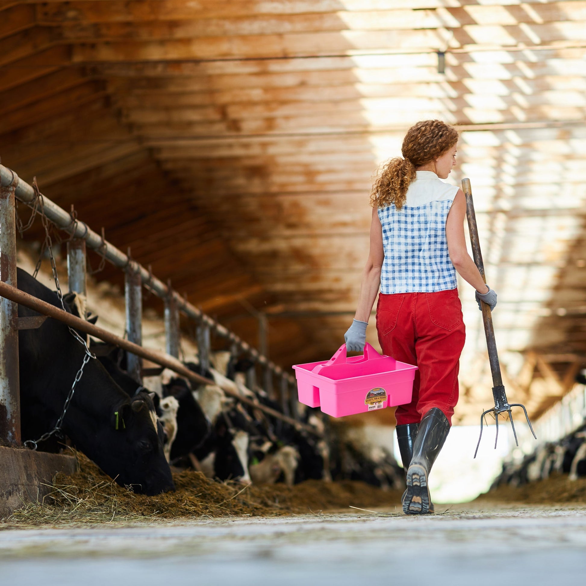 Little Giant DuraTote Plastic Box Organizer w/2 Compartments & Grip Handle, Pink