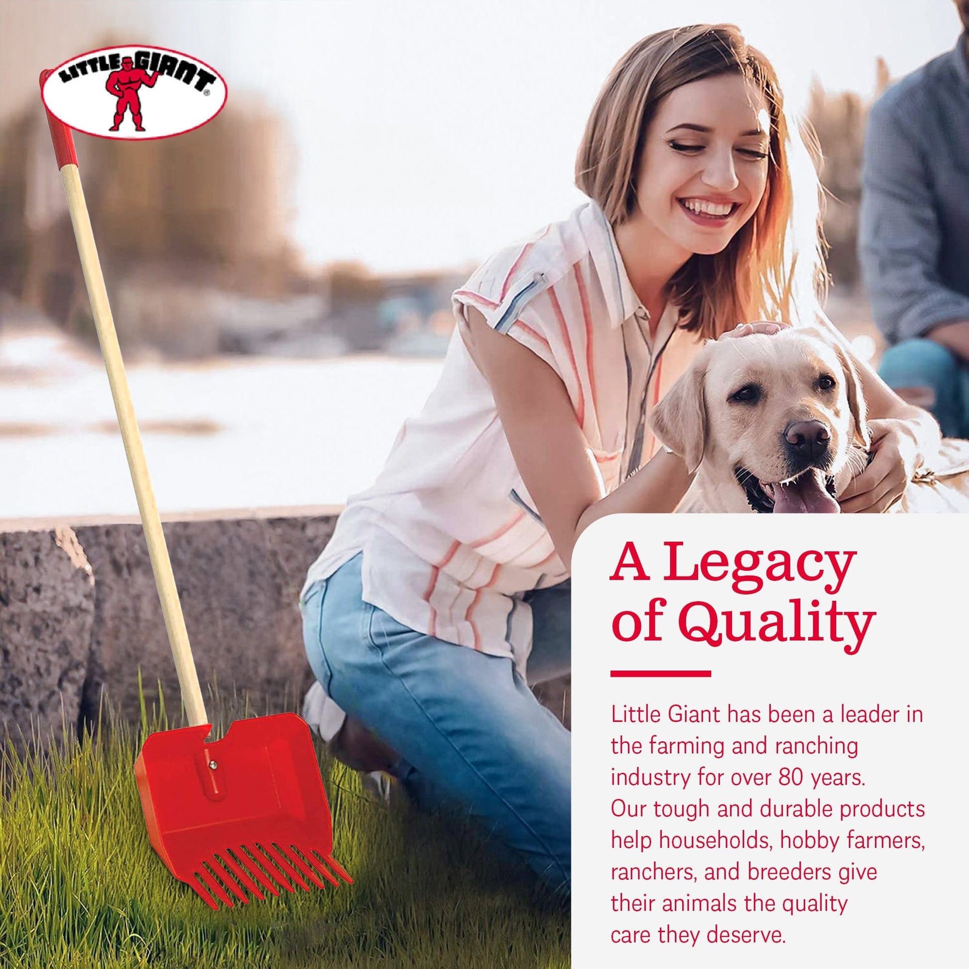 Little Giant Easy Scoop Pet Lodge Pooper Scooper for Dogs w/ Wooden Handle, Red