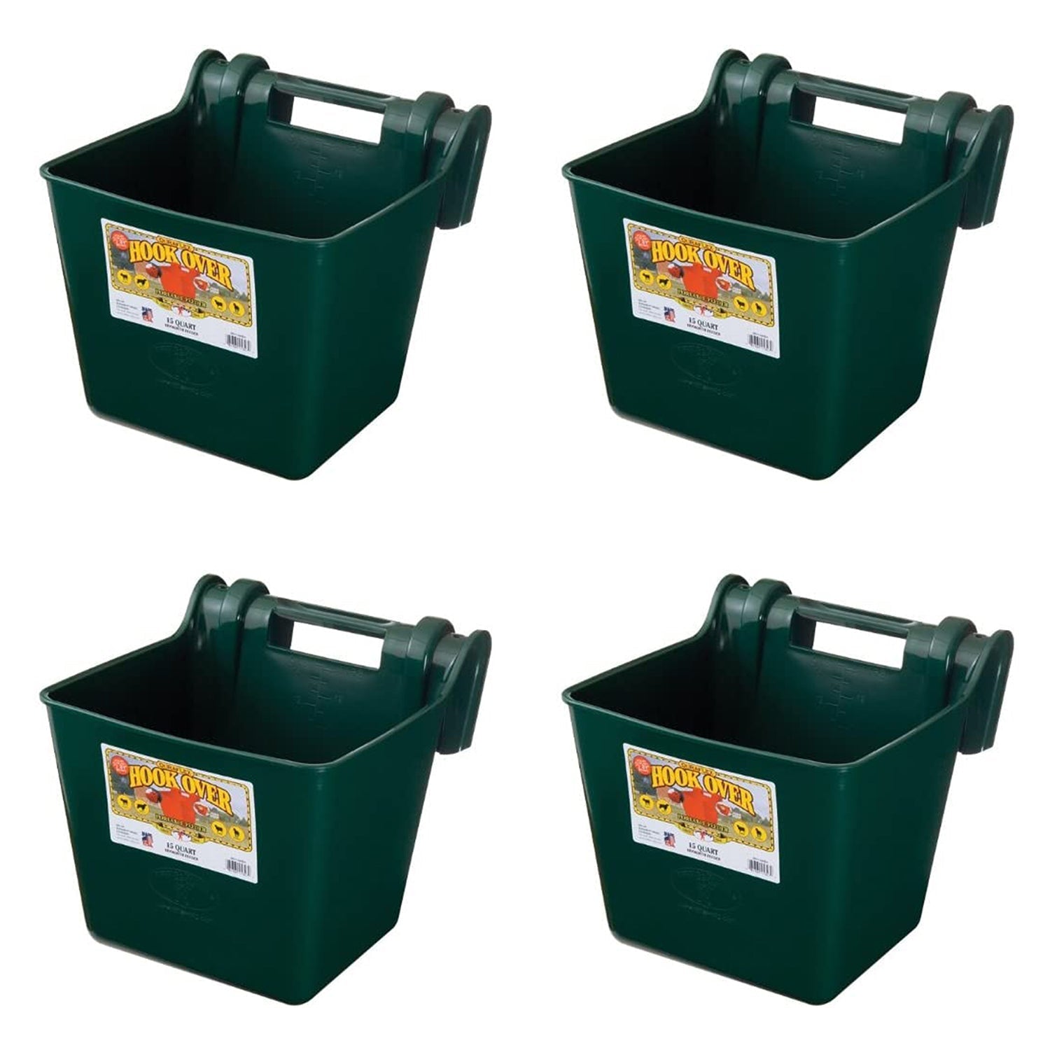 Little Giant Heavy Duty 15 Quart Mountable Plastic Hook Feeder, Green (4 Pack)