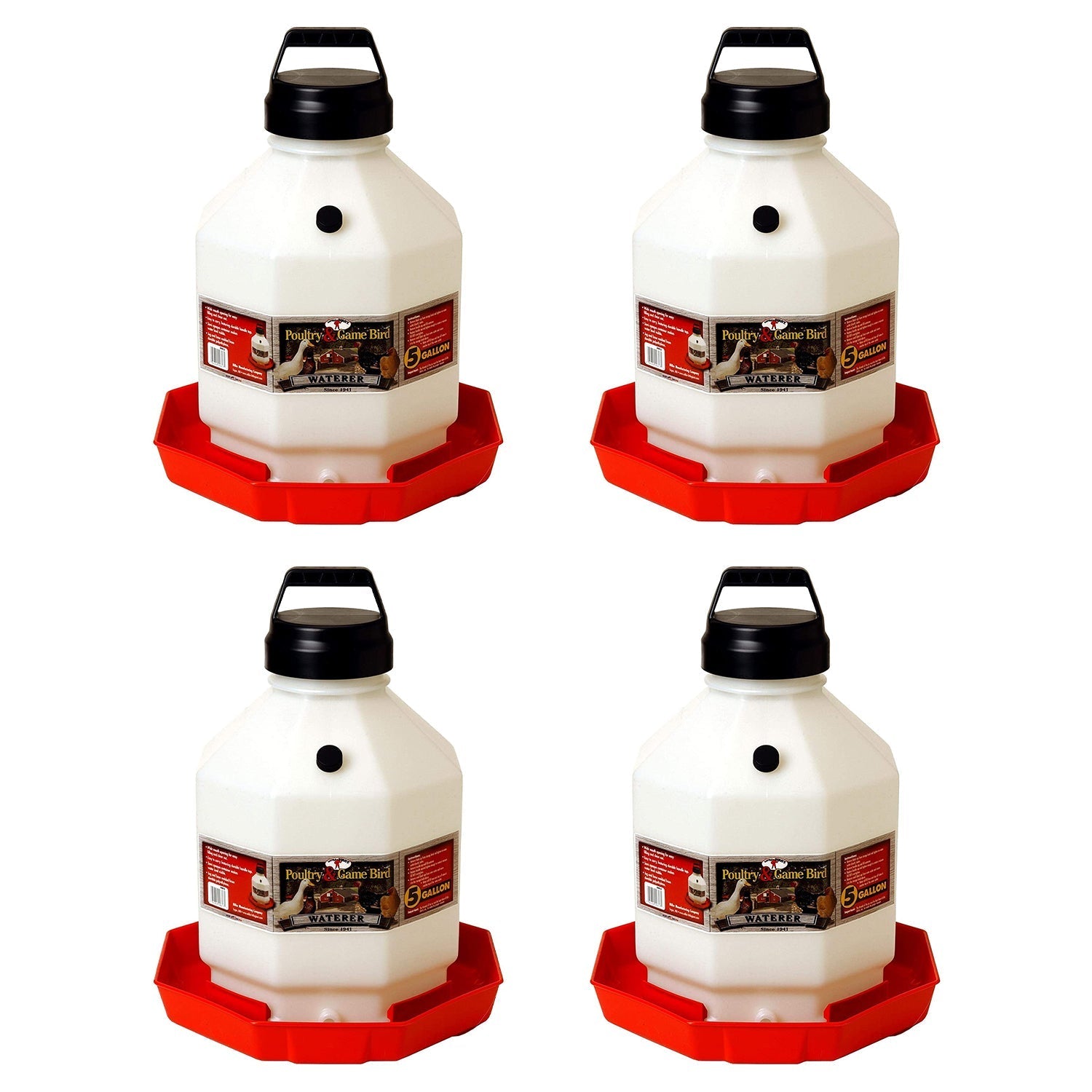 Little Giant PPF5 5 Gallon Automatic Poultry Waterer for Chickens, Red (4 Pack)