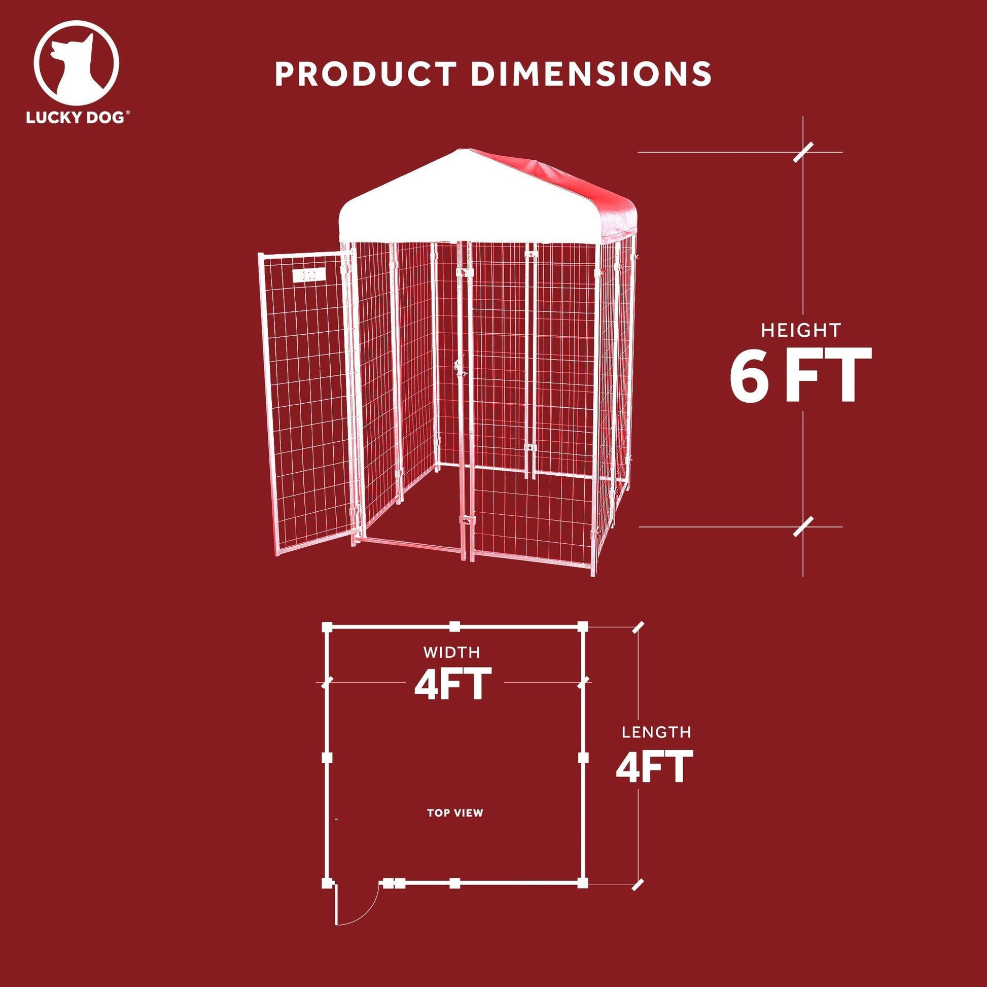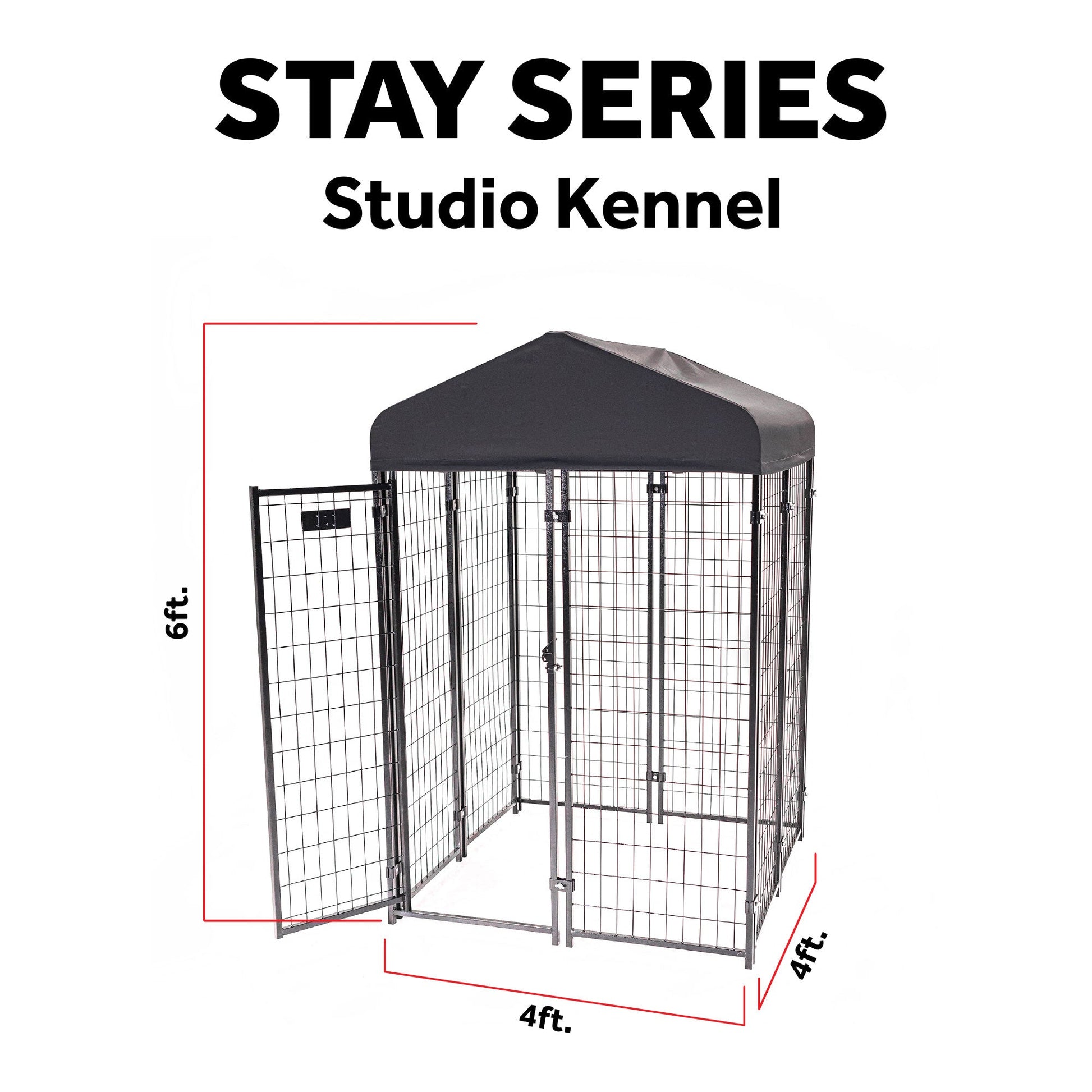 Lucky Dog STAY Series 4 x 4 x 6 Foot Roofed Steel Frame Studio Dog Kennel, Grey