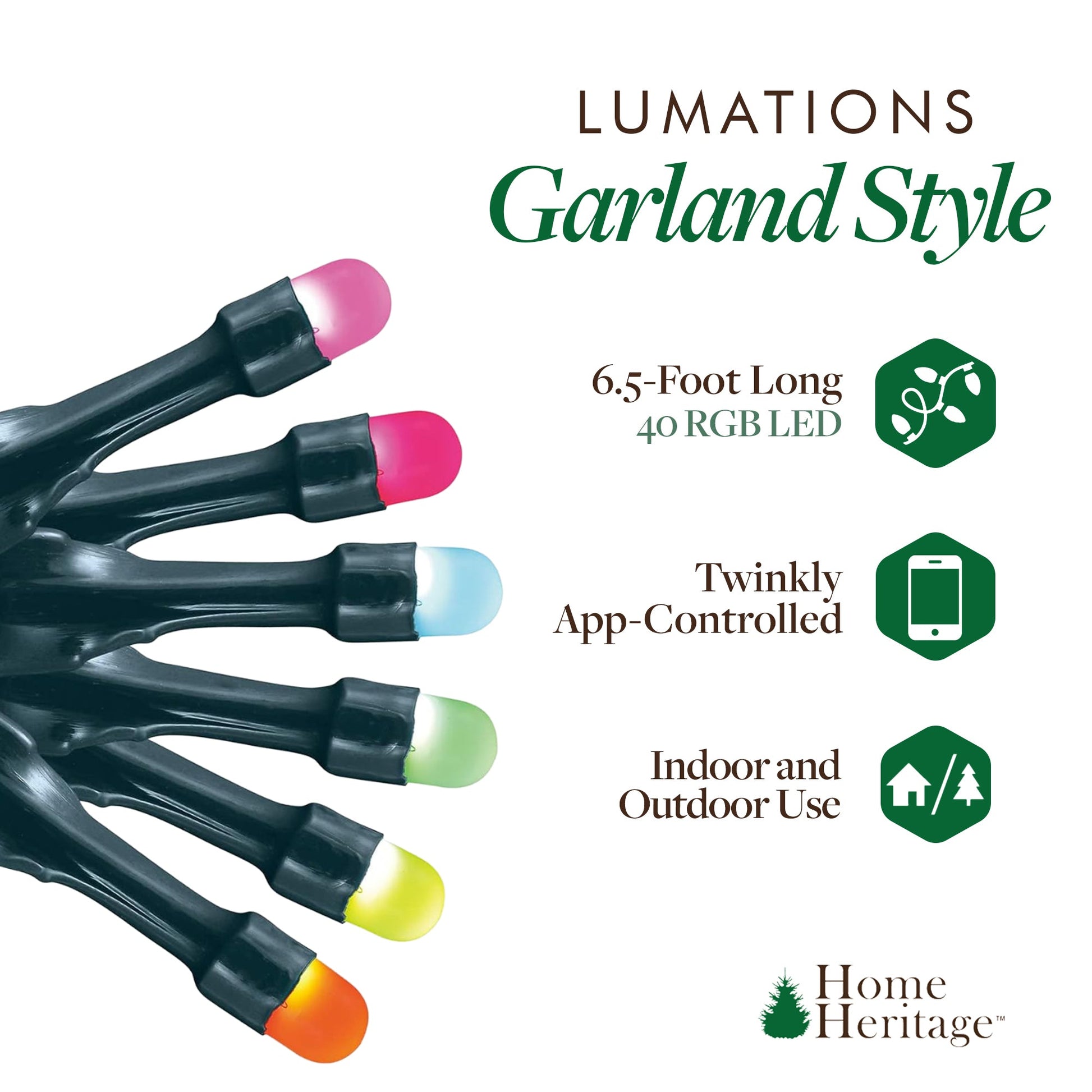 Add a touch of magical illumination to any occasion with the Home Heritage Luminations Christmas Lights. This vibrant garland-style light string features 40 classic multicolor RGB LED bulbs spaced 2 inches apart and can be effortlessly controlled with the Twinkly app on your smartphone. Use it to adorn your patio or garden or to create an enchanting atmosphere at a festival, party, wedding, or holiday celebration. Whether indoors or outdoors, this cute blinking light decoration will enhance any space with shine and charm.