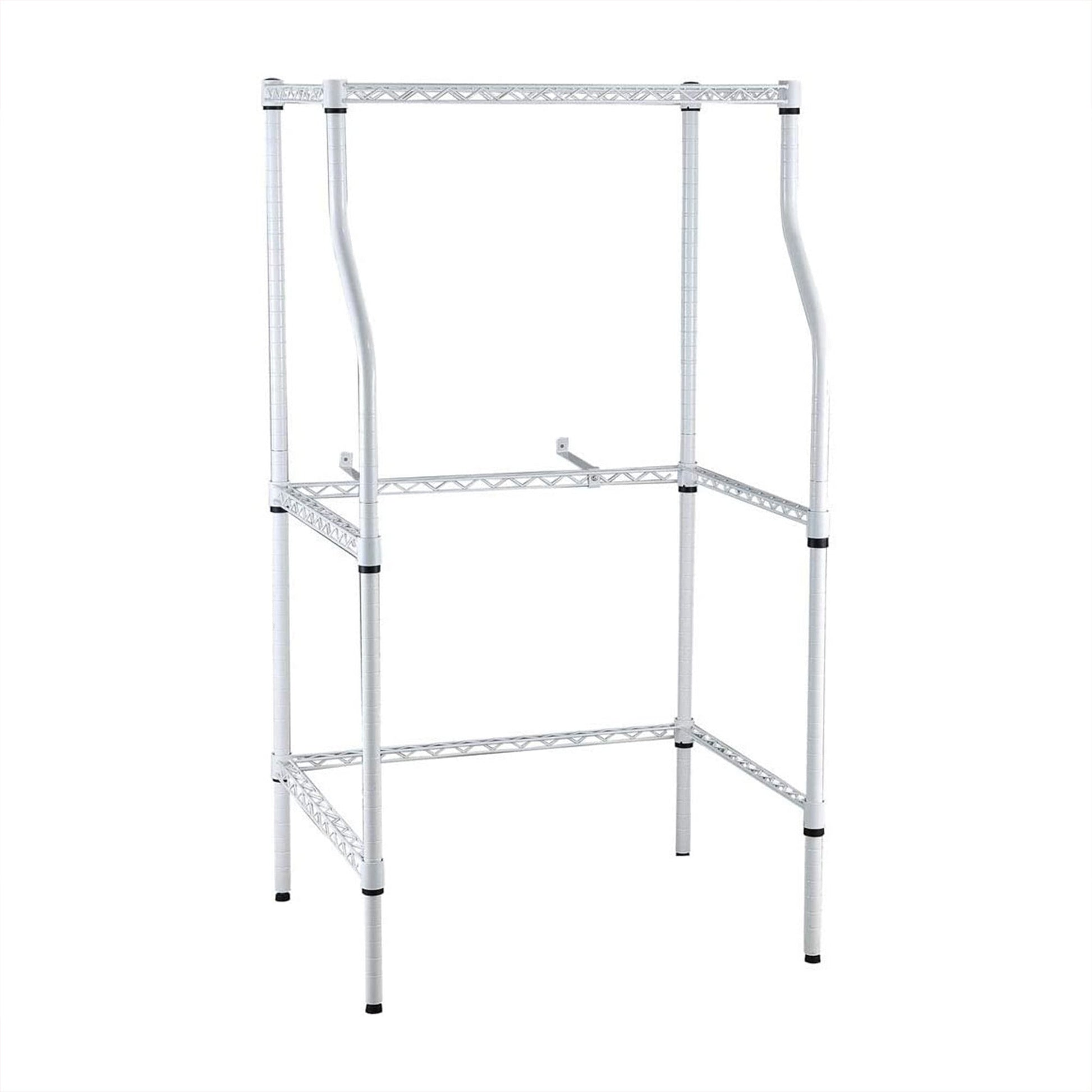 Convenient laundry room storage is always available with Magic Chef. Are you looking for more space in your laundry room? Maybe you have a small apartment or dorm and need to maximize space, or maybe you just need a convenient way to organize. Regardless of your situation, the Magic Chef Compact Laundry Stand will work for you. This perfectly sized shelving unit has a convenient upper shelf that’s strong enough to hold a small dryer and fits over a small washer to fully maximize your laundry space. Use this versatile organizer to keep your appliances neatly stored, use it as a laundry supply station to keep detergent and supplies close at hand, or add it to your bathroom for extra storage in tight spaces.