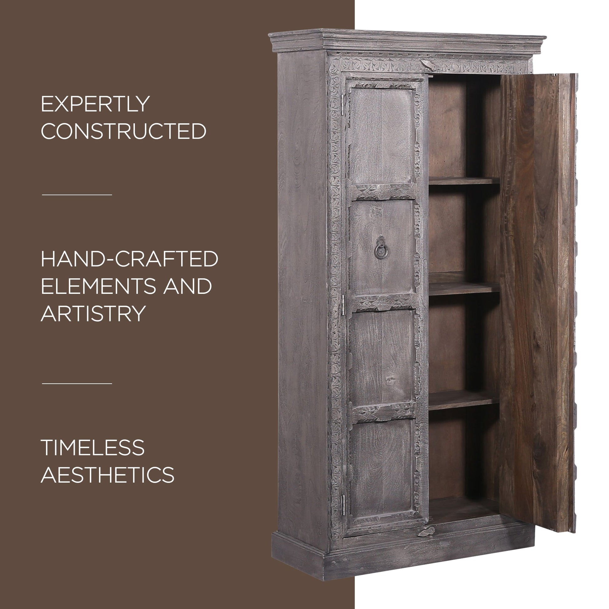 Meander into the vivid world of Indian furniture with our Mahala Wooden Cabinet, where each masterpiece is a testament to the rich cultural heritage that has inspired its creation. Abounding with masterful adaptability, spacious shelves, distressed wood grain, and loads of interior vertical space, this cabinet lets its muted hues and intricate designs captivate your senses as you immerse yourself in a world where art, history, and culture converge. The rectangular double doors offer the utmost in sophistication where art meets function, transforming your abode into a captivating haven that nurtures both body and spirit, reflecting India’s diverse culture and timeless aesthetic sensibilities.