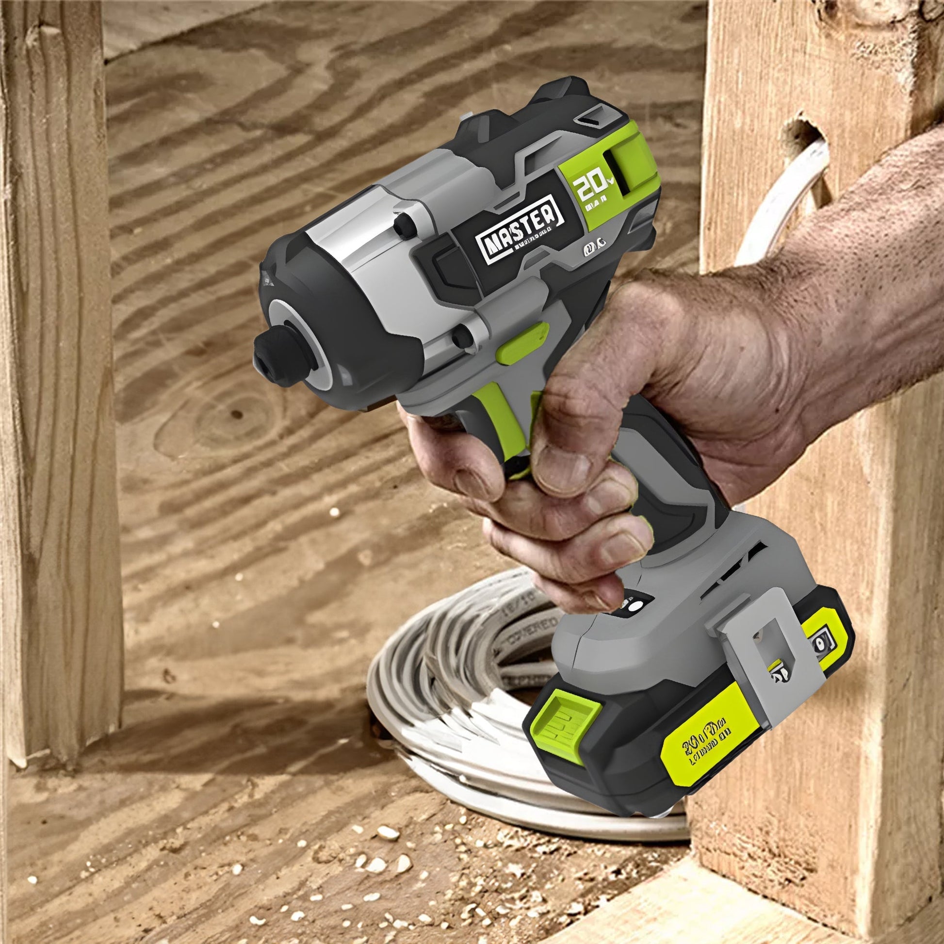 Advance your projects with the Master Mechanic 20V Compact Cordless Impact Driver Kit, offering exceptional power and performance in a compact, easy-to-handle design.