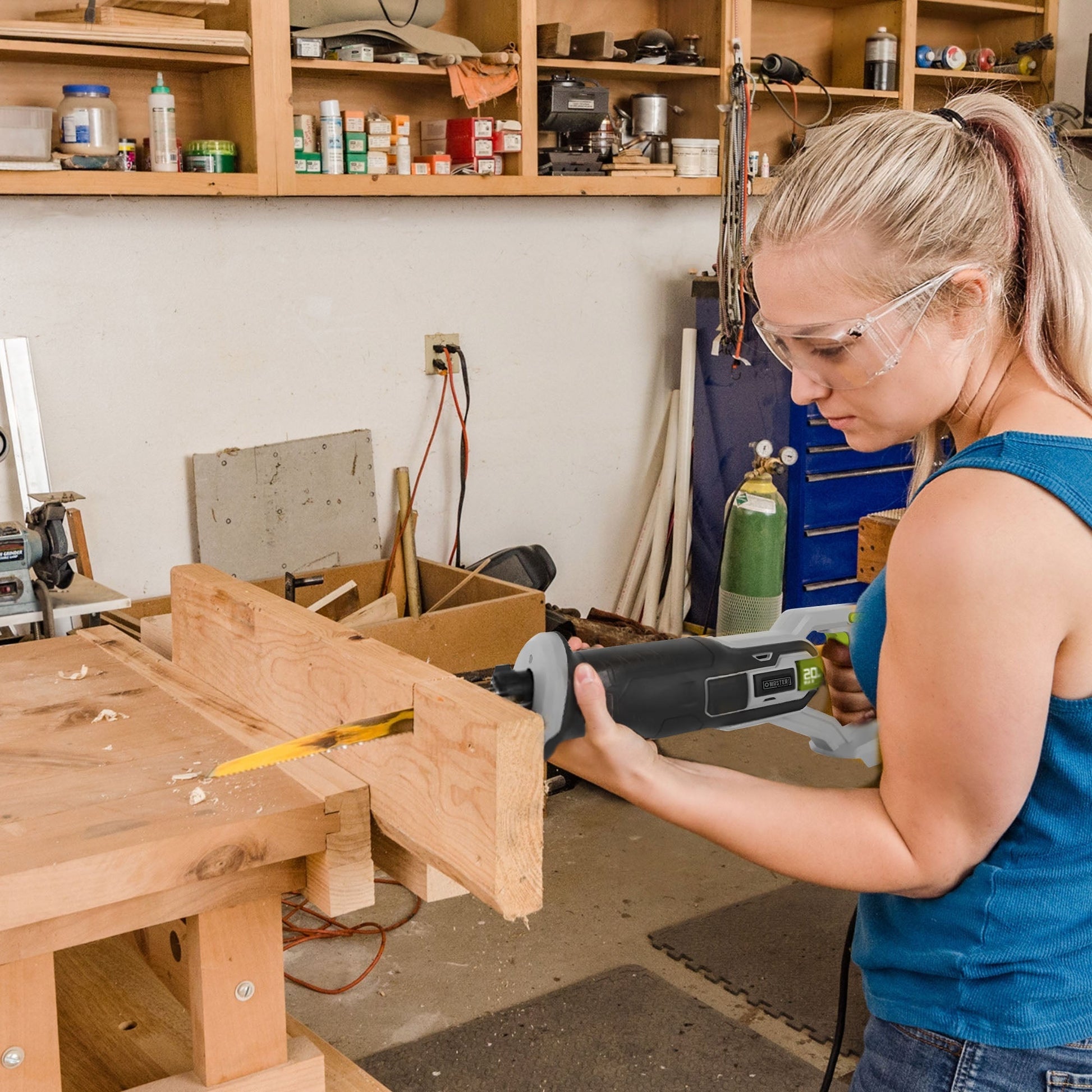 Ideal for both professionals and DIY enthusiasts, the Master Mechanic 20-Volt Compact Cordless Reciprocating Saw is a reliable and indispensable addition to your toolkit. Its compact design makes it easy to handle and maneuver, even in tight spaces, while the electric brake enhances safety by quickly stopping the blade after the trigger is released. Equip yourself with this robust, top-tier saw and tackle your projects with confidence and ease.