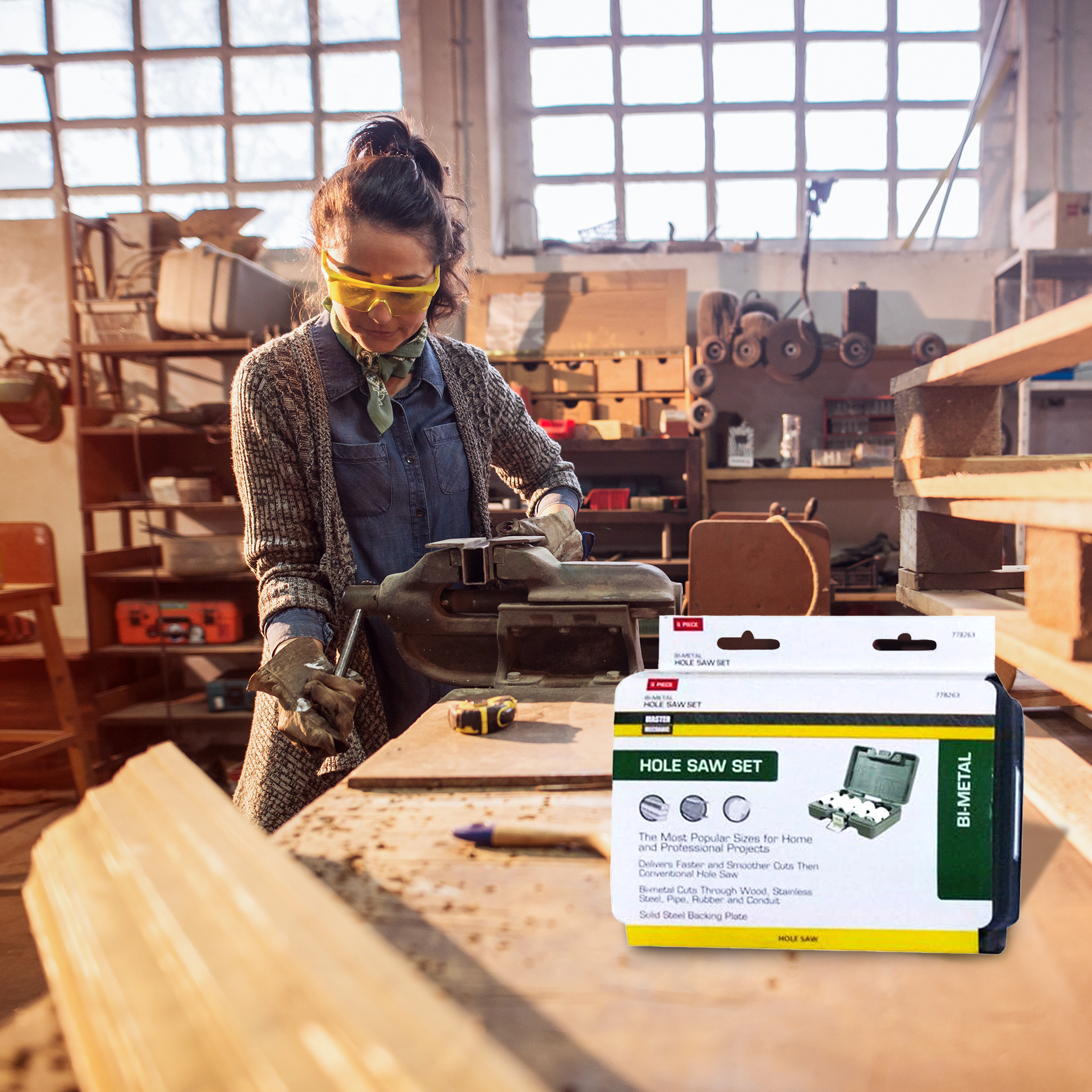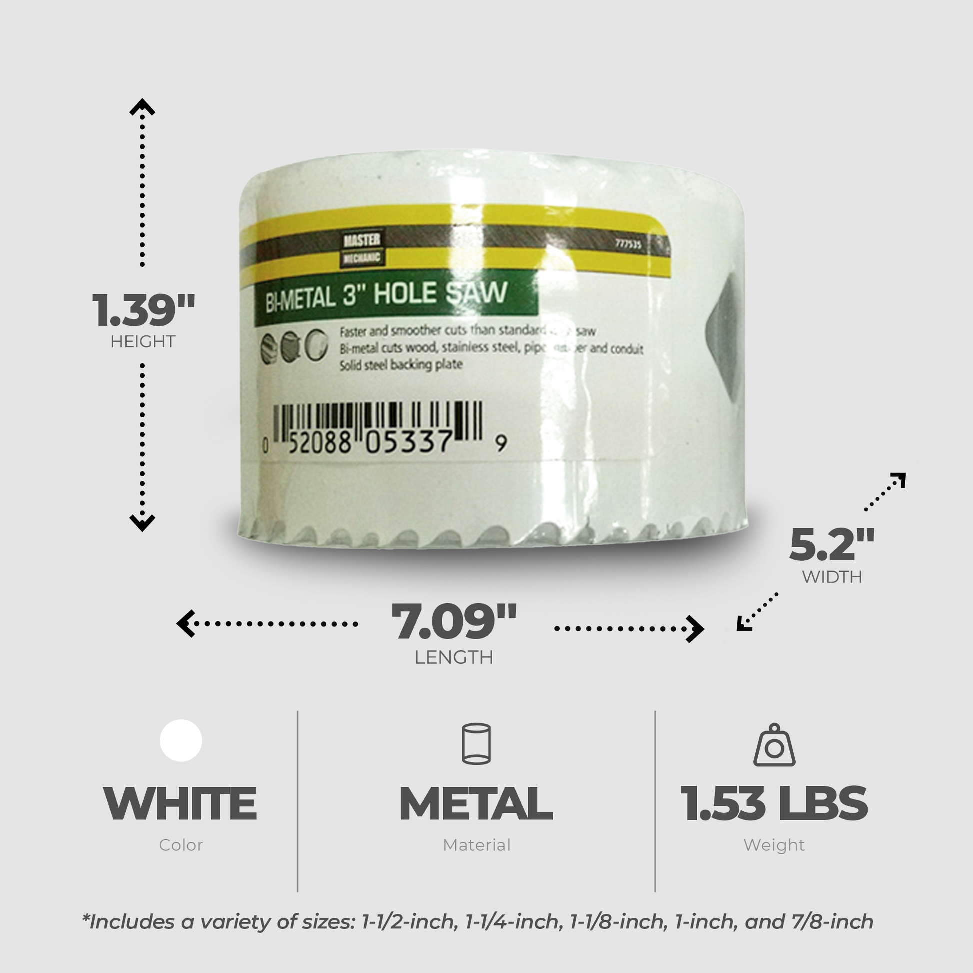 Presented in a convenient, carded package, this set includes an array of sizes: 1-1/2-inch, 1-1/4-inch, 1-1/8-inch, 1-inch, and 7/8-inch, empowering you to tackle any project with confidence and mastery. Elevate your craftsmanship to new heights with the Master Mechanic 6-Piece Bi-Metal Hole Saw Set, where innovation meets reliability, and precision reigns supreme.