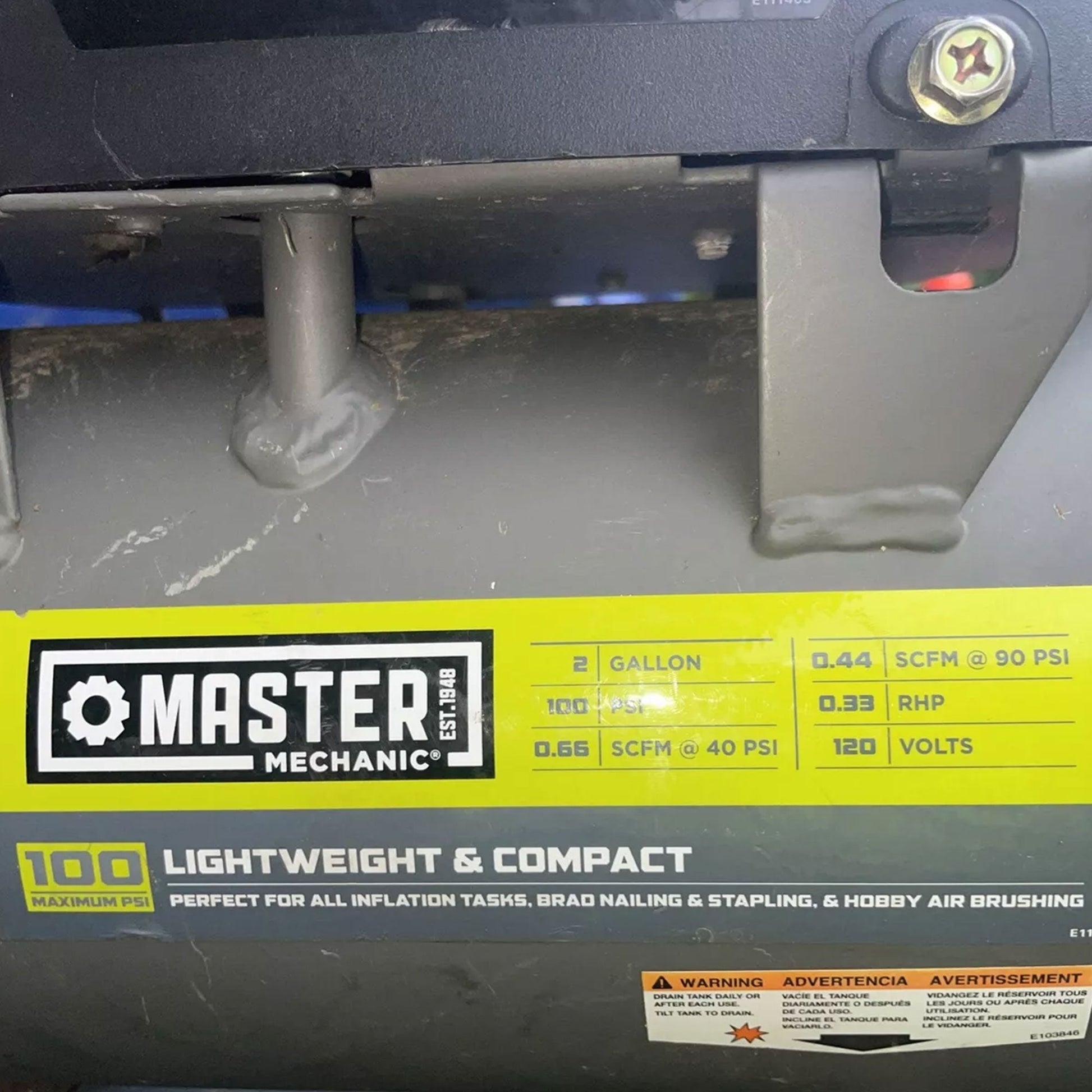 Advance your DIY projects and home improvement tasks with the Master Mechanic 2-Gallon Air Compressor, a powerful yet compact tool designed for convenience and efficiency.