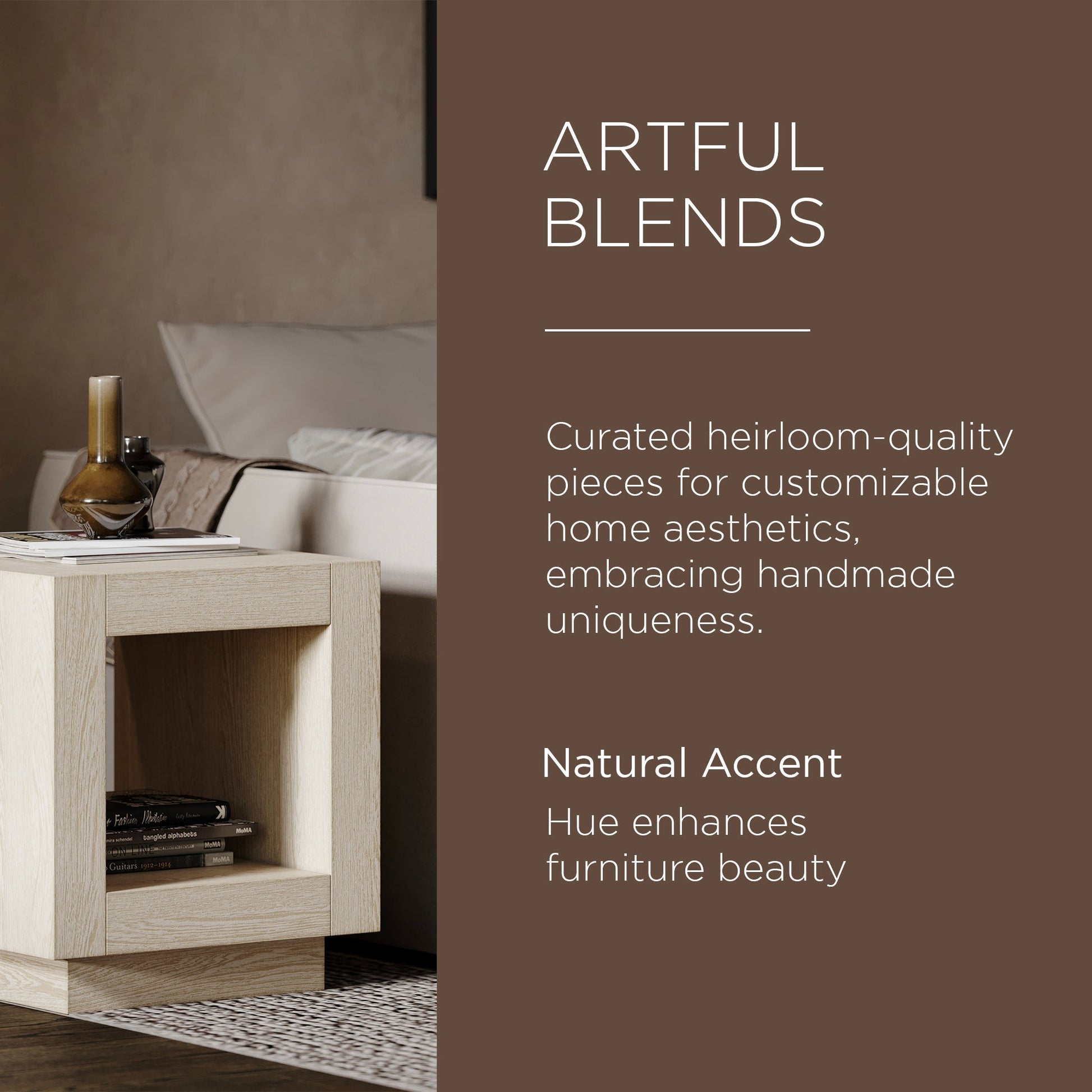 The sleek and streamlined companion your guest room, apartment, or living room furniture has been pursuing, our Artemis Contemporary Wooden Side Table with shelf for small spaces is a modern must-have. With a tall, cube-like silhouette and a swoon-worthy refined wooden finish, the juxtaposition of these two elements creates an abstract visual interest you can’t deny. Paired to perfection with any statement piece or upholstery options, this transitional wooden side table would look extraordinary at your bedside or beside your country leather, cottage linen, or vintage velvet sofa. And the smart craftsmanship on our square nightstand is beyond incredible. Just as these end tables are skillfully handcrafted by talented artisans, that also ensures no two accent pieces are completely alike— as each will have the characteristics, such as varying natural wood grain, that will make each table a one-of-a-kind and unique work of art. Be sure to check out our Artemis Coffee Tables for coordinating pieces to complete your living room décor vision. At Maven Lane, our well-made furniture is meticulously handcrafted with methods to stand the test of time, including hand finishes displaying impeccable attention to every small detail and sturdy mortise-and-tenon joinery, which promotes strength and longevity. Furthermore, by utilizing premium upholstery and kiln-dried hardwood in our solid wood furniture, we’ve solidified the superiority of craftsmanship you’ve come to expect from Maven Lane. We've carefully curated an entire medley of heirloom-quality pieces that can be mixed and matched to create the aesthetic your home has been seeking. Given the handmade nature of our products, minimal variations may occur in color, tone, and wood finish.