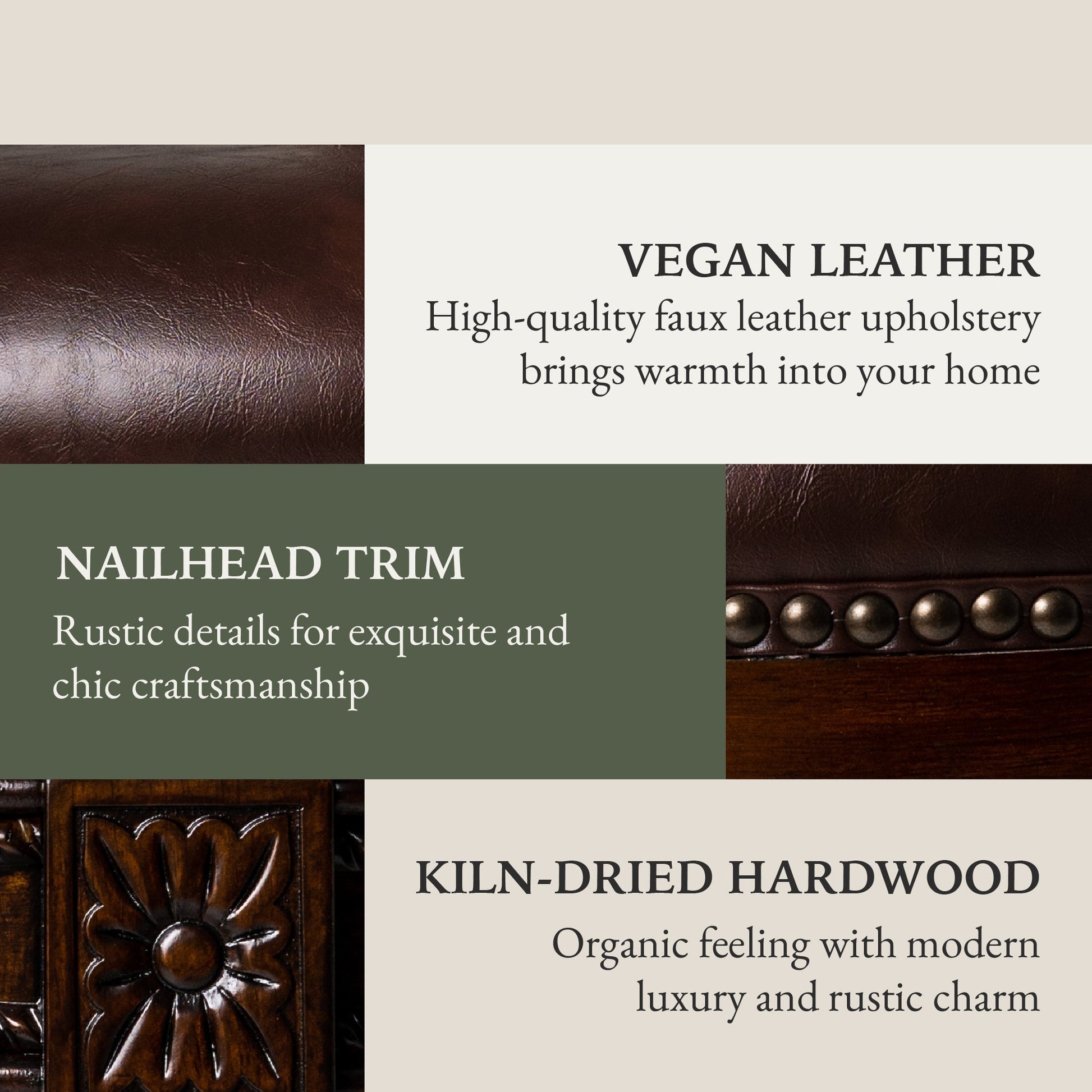 - Hand-applied nail head trim, intricately carved details, and impeccable craftsmanship all come together to bring you premium form and function