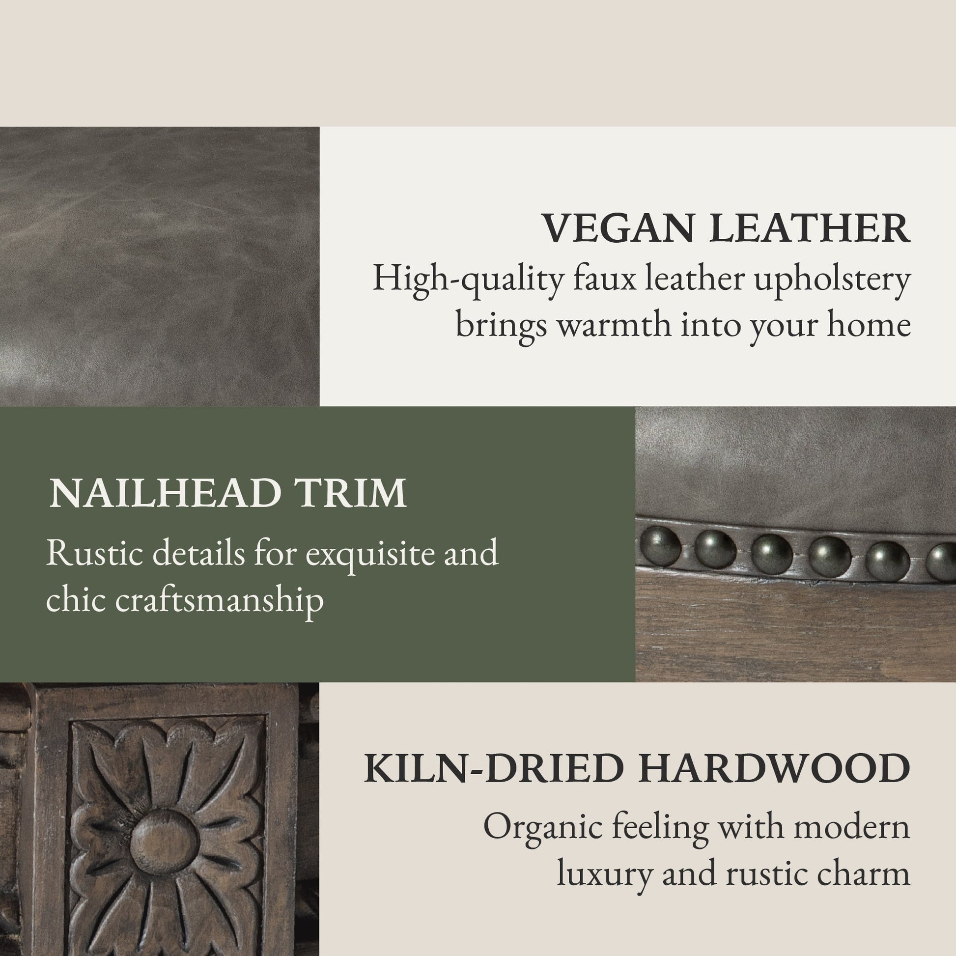 - Hand-applied nail head trim, intricately carved details, and impeccable craftsmanship all come together to bring you premium form and function