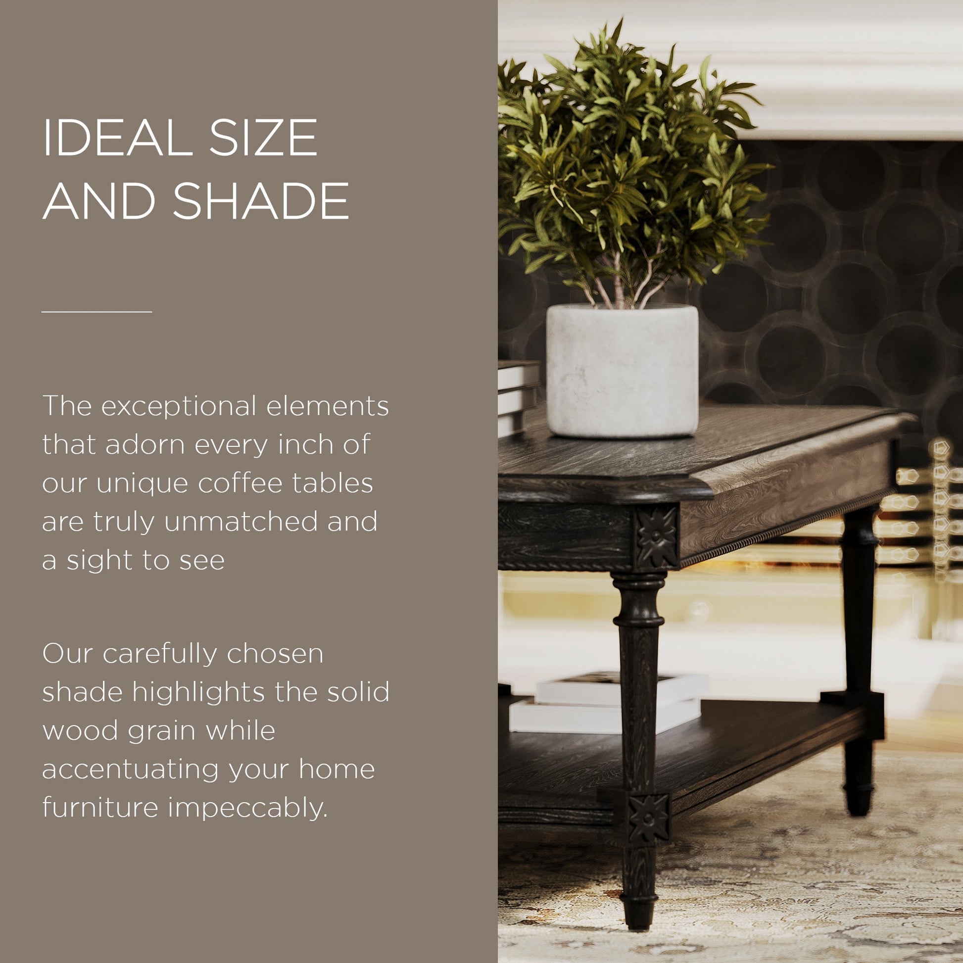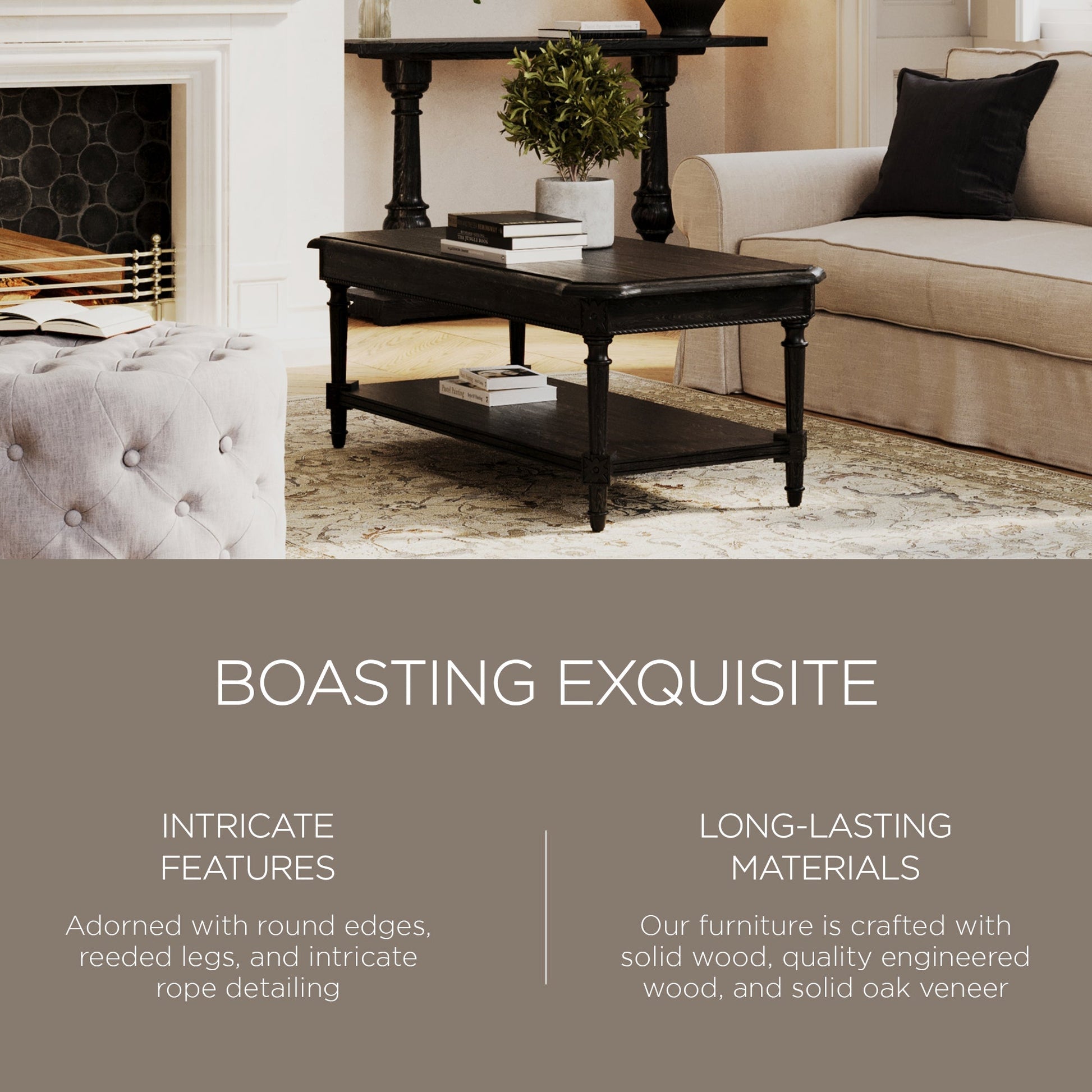 Maven Lane Pullman Traditional Rectangular Wooden Coffee Table, Antiqued Black