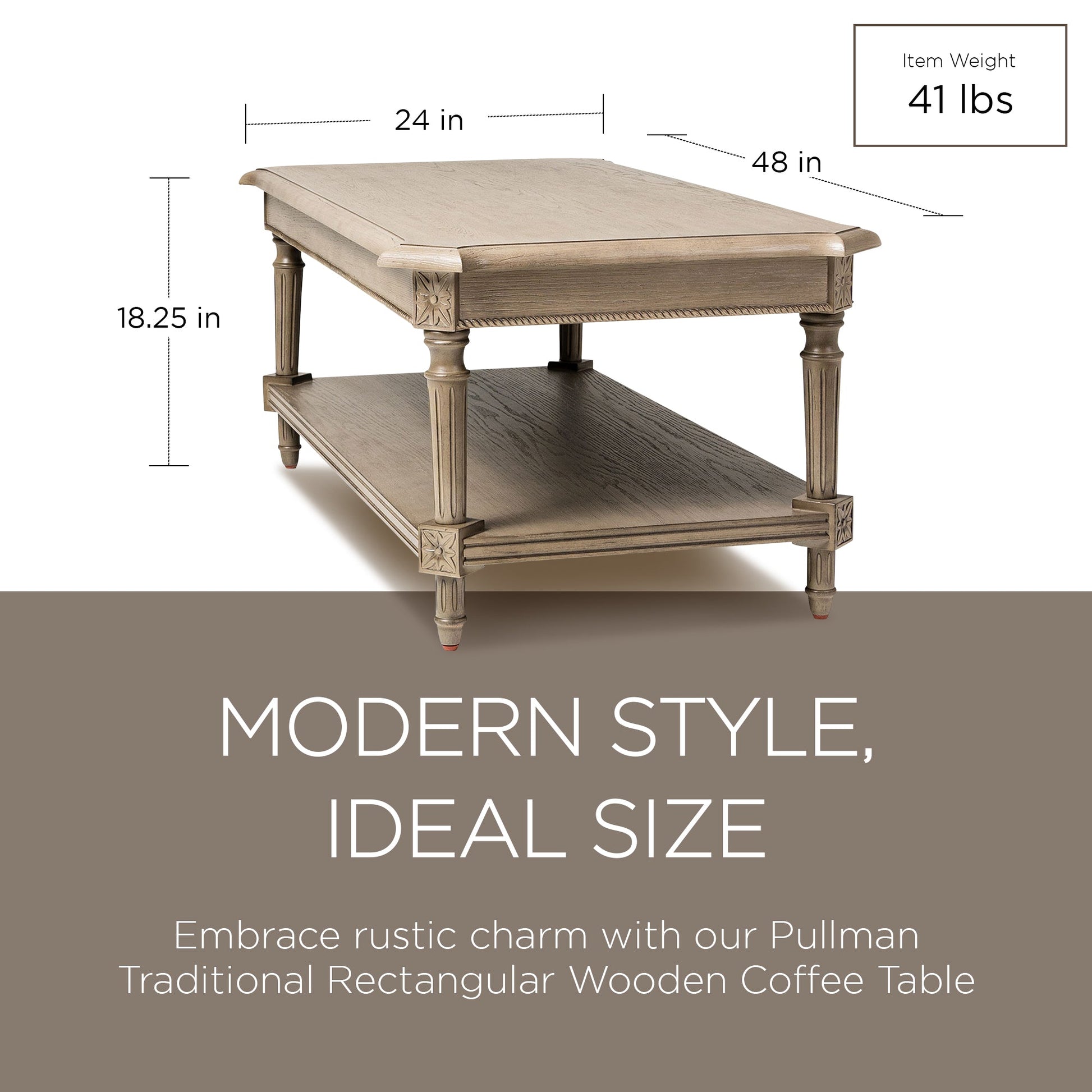 Maven Lane Pullman Traditional Rectangular Wooden Coffee Table, Antiqued Grey