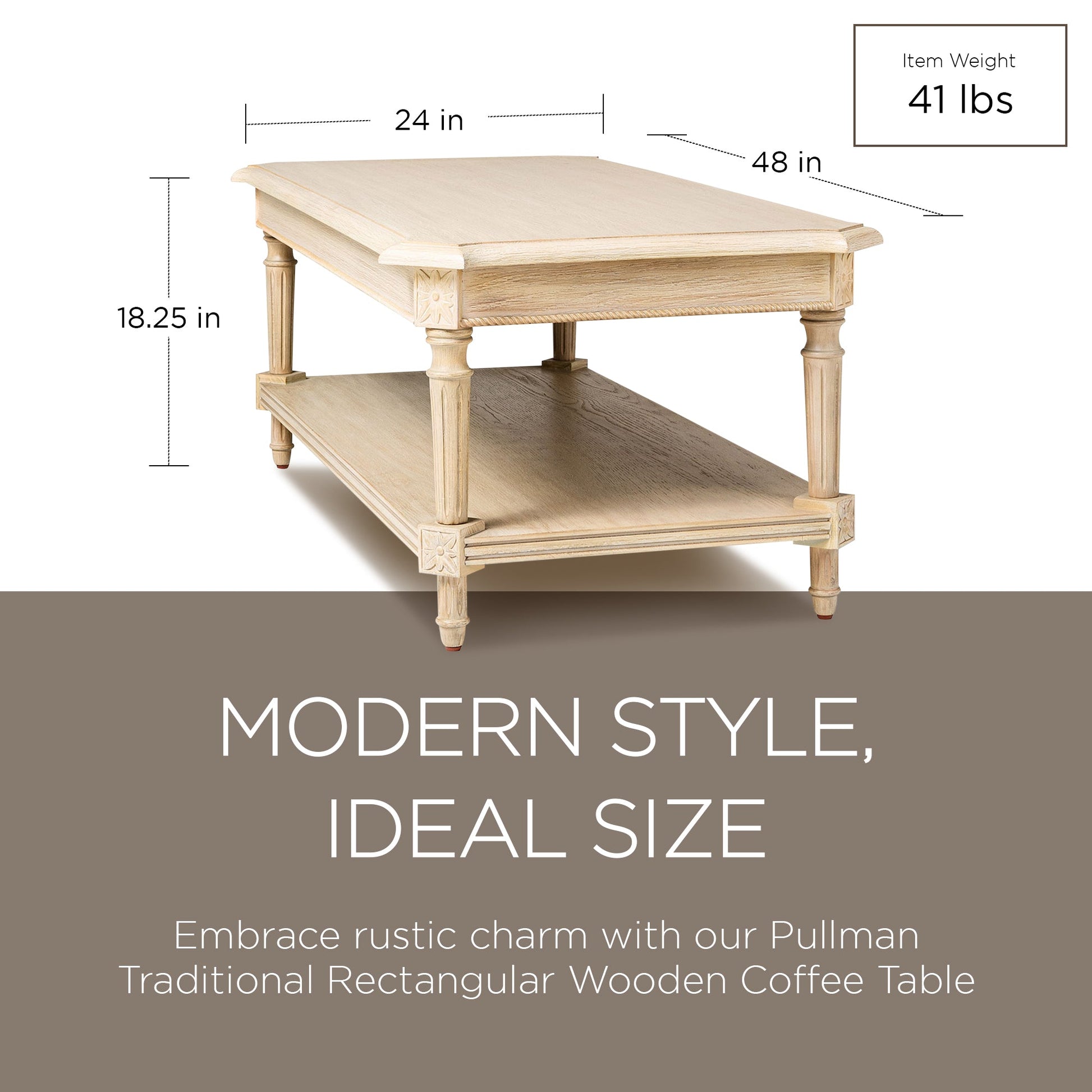 Maven Lane Pullman Traditional Rectangular Wooden Coffee Table, Antiqued White