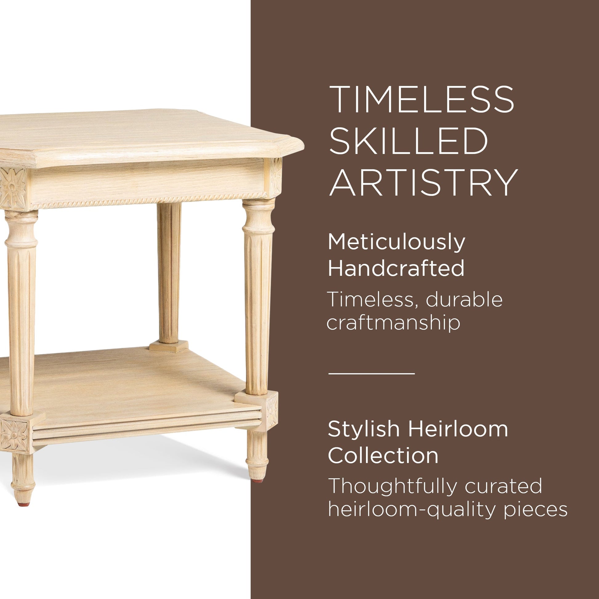 Maven Lane Pullman Traditional Square Wooden Side Table in Antiqued White Finish