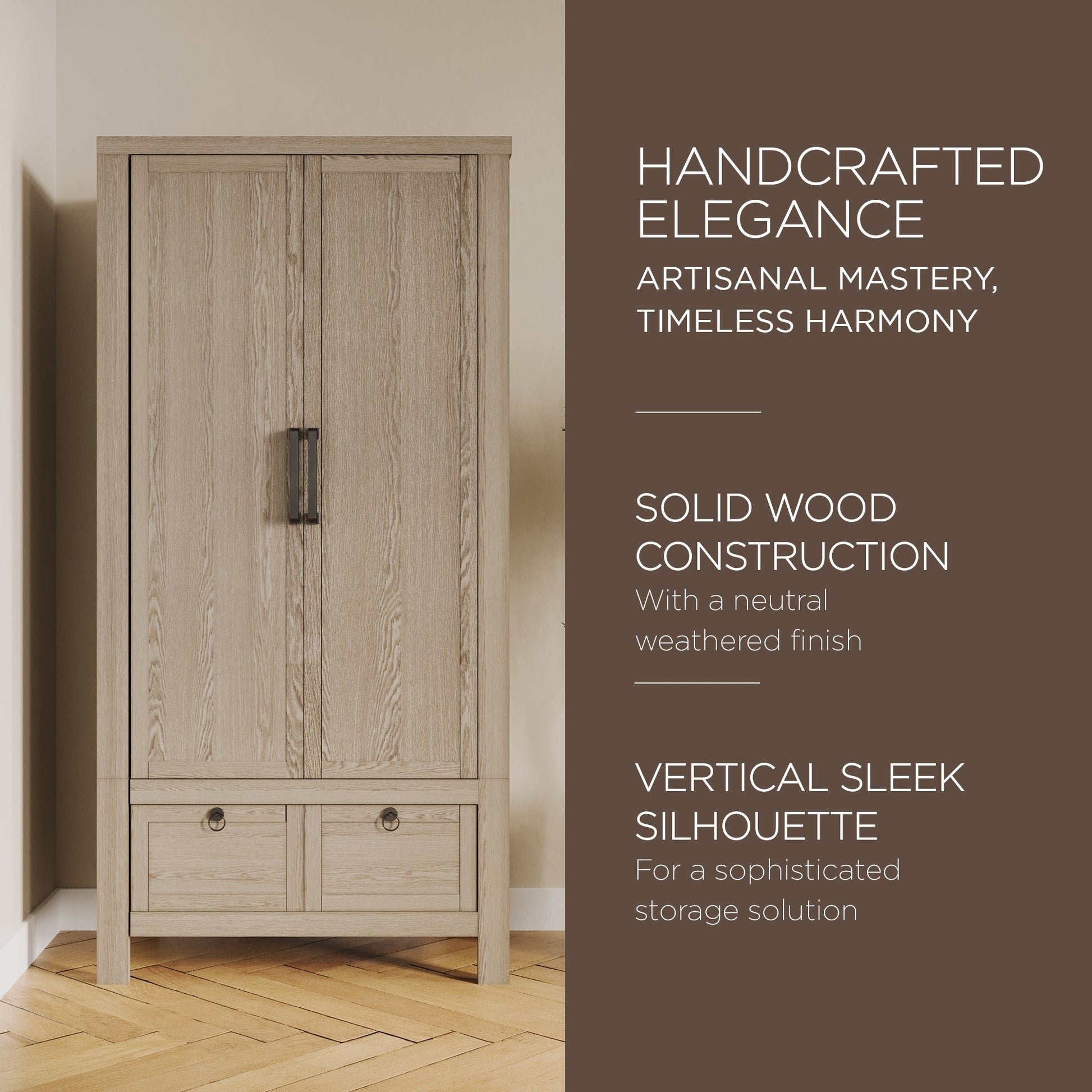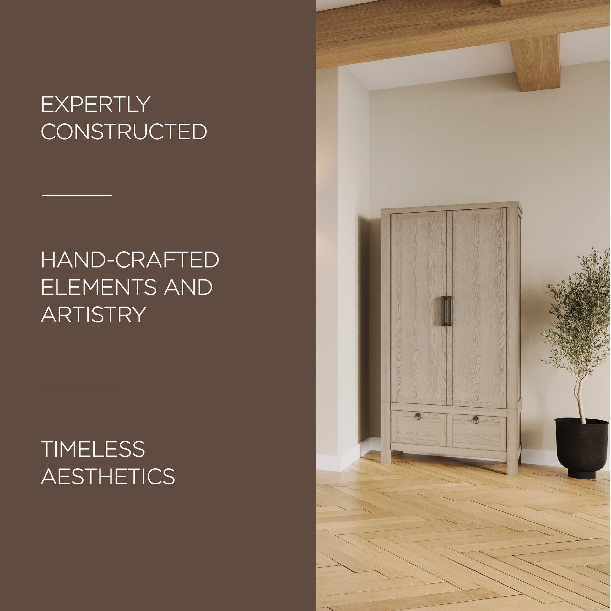 With a classic shaker-style façade and bursting with versatile home storage, our freestanding Vaughn Wooden Cabinet with Doors offers stylish solutions to answer your organization needs. With five spacious interior shelves and two deep drawers, this real-wood pantry could be a roomy kitchen cabinet for your serving pieces, flatware, and glass stemware. Fill this enclosed bookcase with your book collection and it would be a chic petite library, with the double doors keeping dust at bay. In your bedroom, you’d have an attractive armoire or wardrobe to keep your clothing and linen towels tidily organized. The perfectly coordinated metal door handles and drawer loops lend a polished finishing touch to its style. Pro tip: if you’re looking for a more built-in look, pair two Vaughn Storage Cabinets side-by-side for a custom look. At Maven Lane, our well-made home furniture is meticulously handcrafted with methods to stand the test of time including hand finishes displaying an impeccable attention to every small detail, and sturdy mortise-and-tenon joinery techniques which promote strength and longevity. Furthermore, by utilizing premium materials and kiln-dried hardwood in our solid wood furniture, we’ve solidified the superiority of craftsmanship you’ve come to expect from Maven Lane. Be sure to view the other pieces in our furniture collection. We've carefully curated an entire medley of heirloom-quality pieces that can be mixed and matched to create the aesthetic your home has been seeking. Given the handmade nature of our products, minimal variations may occur in color, tone, and wood finish.