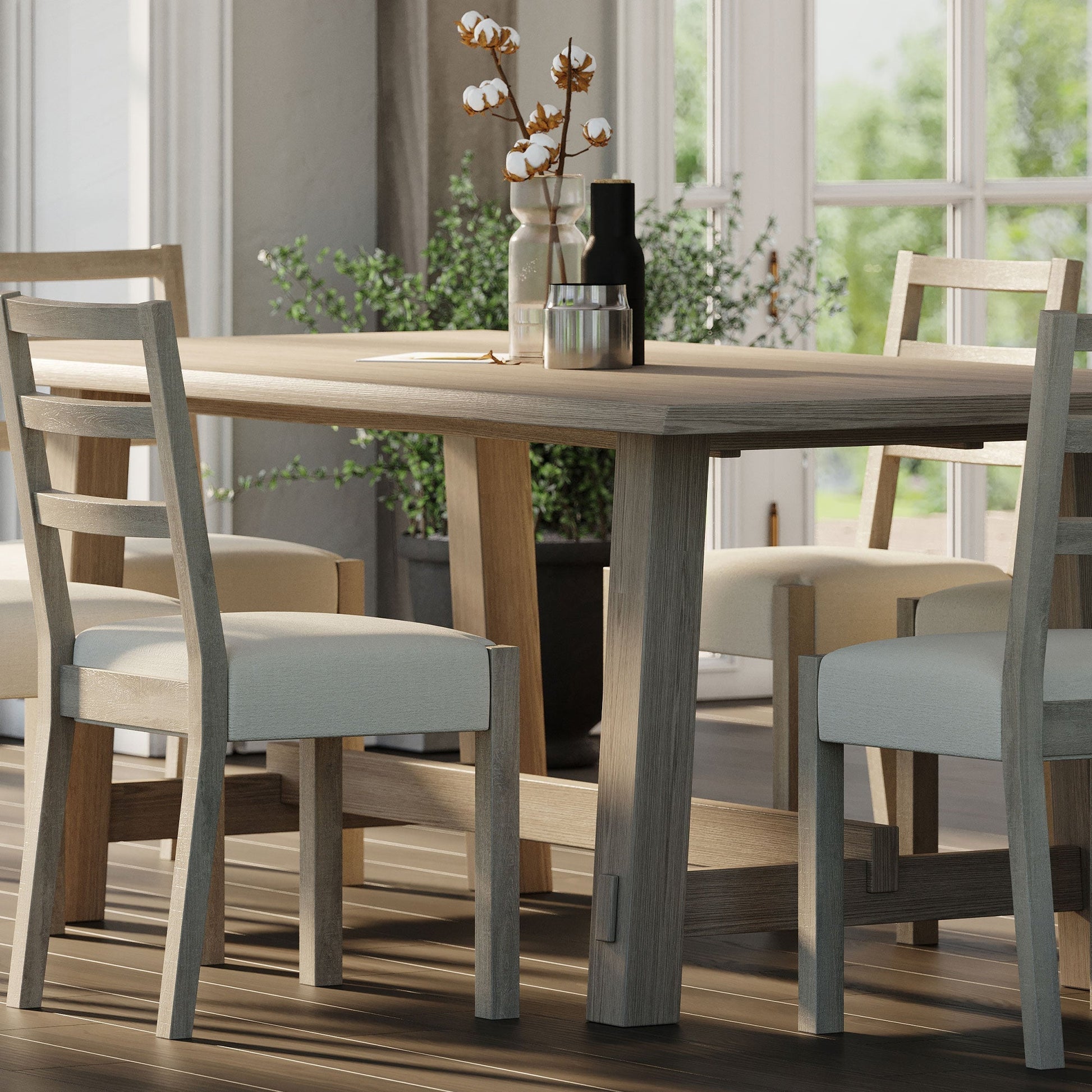 Rustic and remarkable, our contemporary Yves Wood Dining Center Table is the quintessential choice for communal gatherings of all sizes. You’ll enjoy simple pleasures as this kitchen table becomes your new favorite place for respite while you relish your morning tea or celebrate milestones. You’ll love the small, hand-crafted details like its heavy-duty cross-beam base, weathered wooden finish, and a slim silhouette that easily pairs with any style of seating from country upholstered to mid-century metal to formal wood. This dining room dinner table is handcrafted from solid, kiln-dried wood and given a natural-toned finish to mesh with your apartment, restaurant, or home’s aesthetic seamlessly. Flawless as a kitchen table for casual cottage dining or dressed up as a game table in your living room—either way, this rectangle table is a welcome addition to your dining endeavors. At Maven Lane, our well-made home furniture is meticulously handcrafted with methods to stand the test of time including hand finishes displaying an impeccable attention to every small detail, and sturdy mortise-and-tenon joinery techniques which promote strength and longevity. Furthermore, by utilizing premium materials and kiln-dried hardwood in our solid wood furniture, we’ve solidified the superiority of craftsmanship you’ve come to expect from Maven Lane. Be sure to view the other pieces in our furniture collection. We've carefully curated an entire medley of heirloom-quality pieces that can be mixed and matched to create the aesthetic your home has been seeking. Given the handmade nature of our products, minimal variations may occur in color, tone, and wood finish.