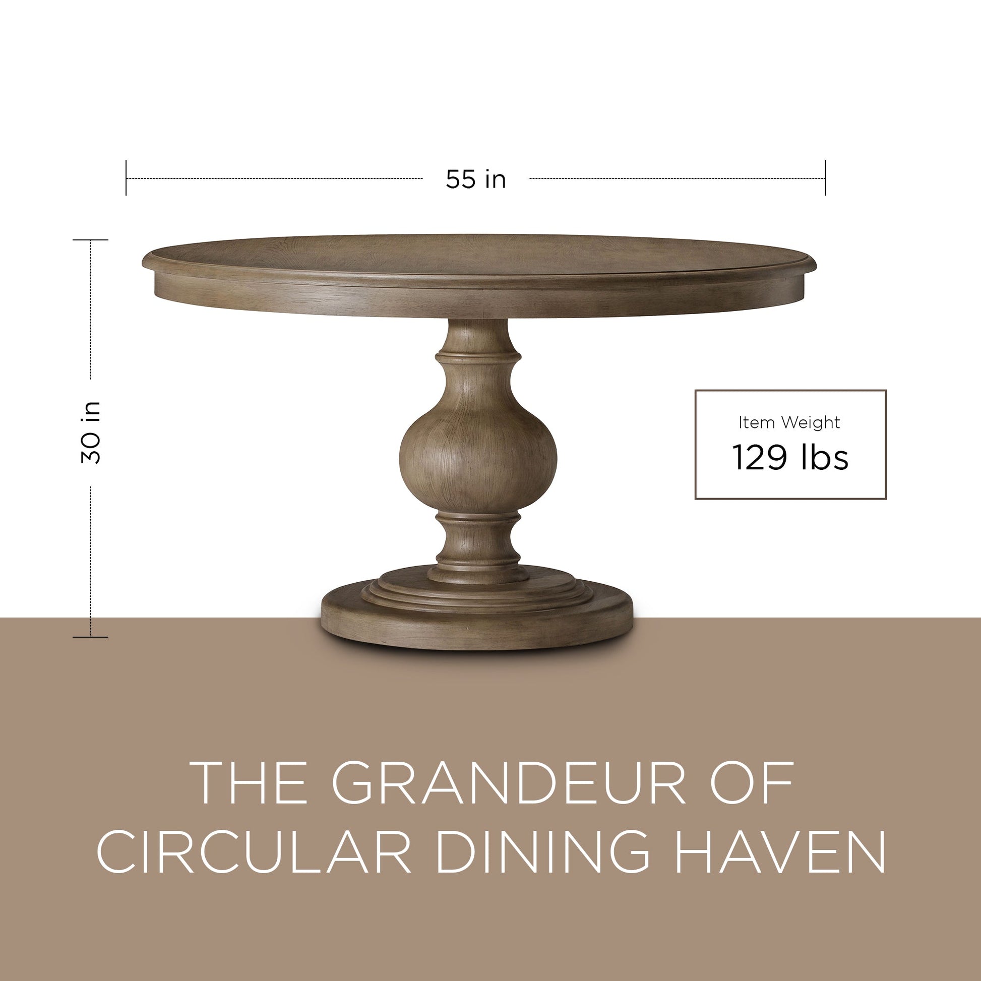 - Dining table features a round wood tabletop, a carved wooden pedestal base, and ample space for loved ones, simply add your preferred chairs