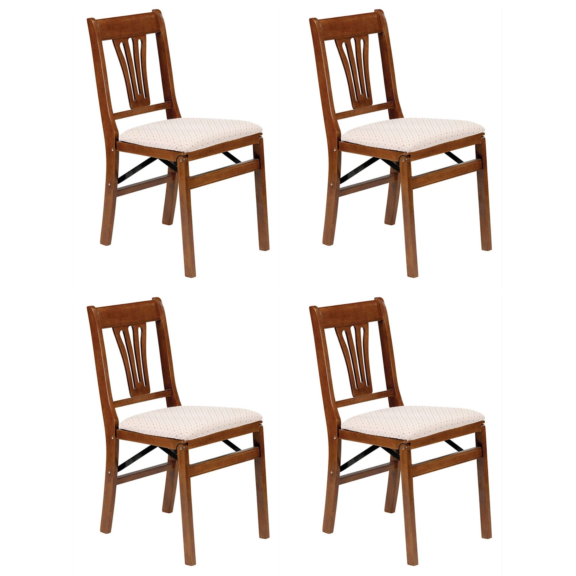 MECO Stakmore Urn Wood Upholstered Seat Folding Chair Set, 4 Pack, Fruitwood