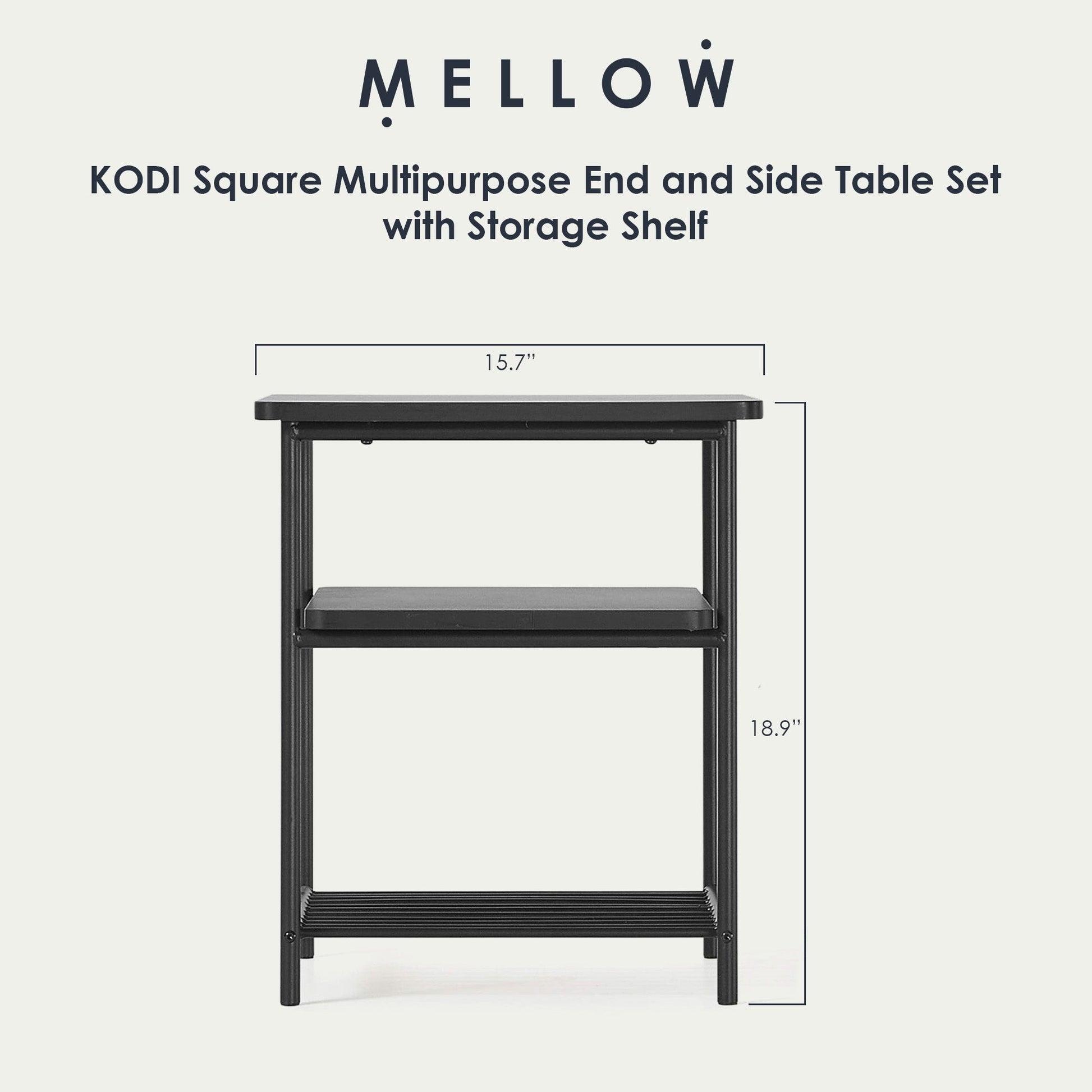 Mellow KODI Square Multipurpose End and Side Table Set with Storage Shelf, Black