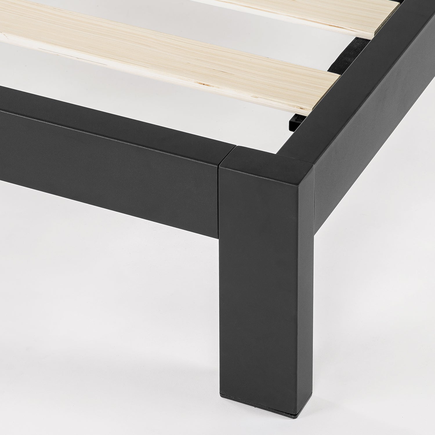 The metal bedframe is made with a 100% steel structure that is extra thick and sturdily built to last. The solid wooden slats are made with real, authentic wood for sturdy support, strength, and durability. The combination of the two gives you a stylish and strong foundation to ensure that you are able to sleep in total comfort without having to sacrifice the aesthetic of your bedroom. The rounded metal legs and corners keep your toes safe no matter the time of day. The Modernista offers an extra 10 inches of under-bed clearance to make the most out of your space.
