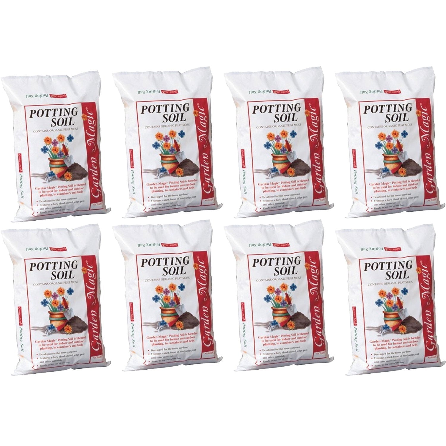 - 8-pack of Garden Magic Potting Soil features a blended formula for indoor and outdoor planting