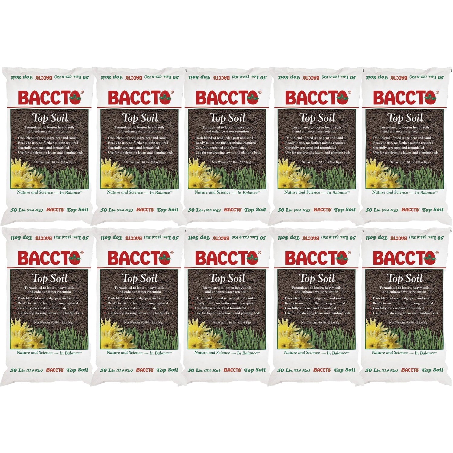 - 10 bags of Michigan Peat Baccto Top Soil helps your soil maintain moisture, microbial, and nutritional balance
