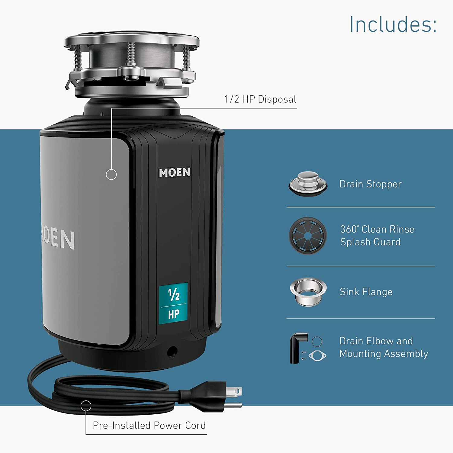 - POWERFUL GRINDING: 2,600 RPM, ½ horsepower Vortex motor provides fast, powerful grinding of everyday food scraps and helps reduce jamming