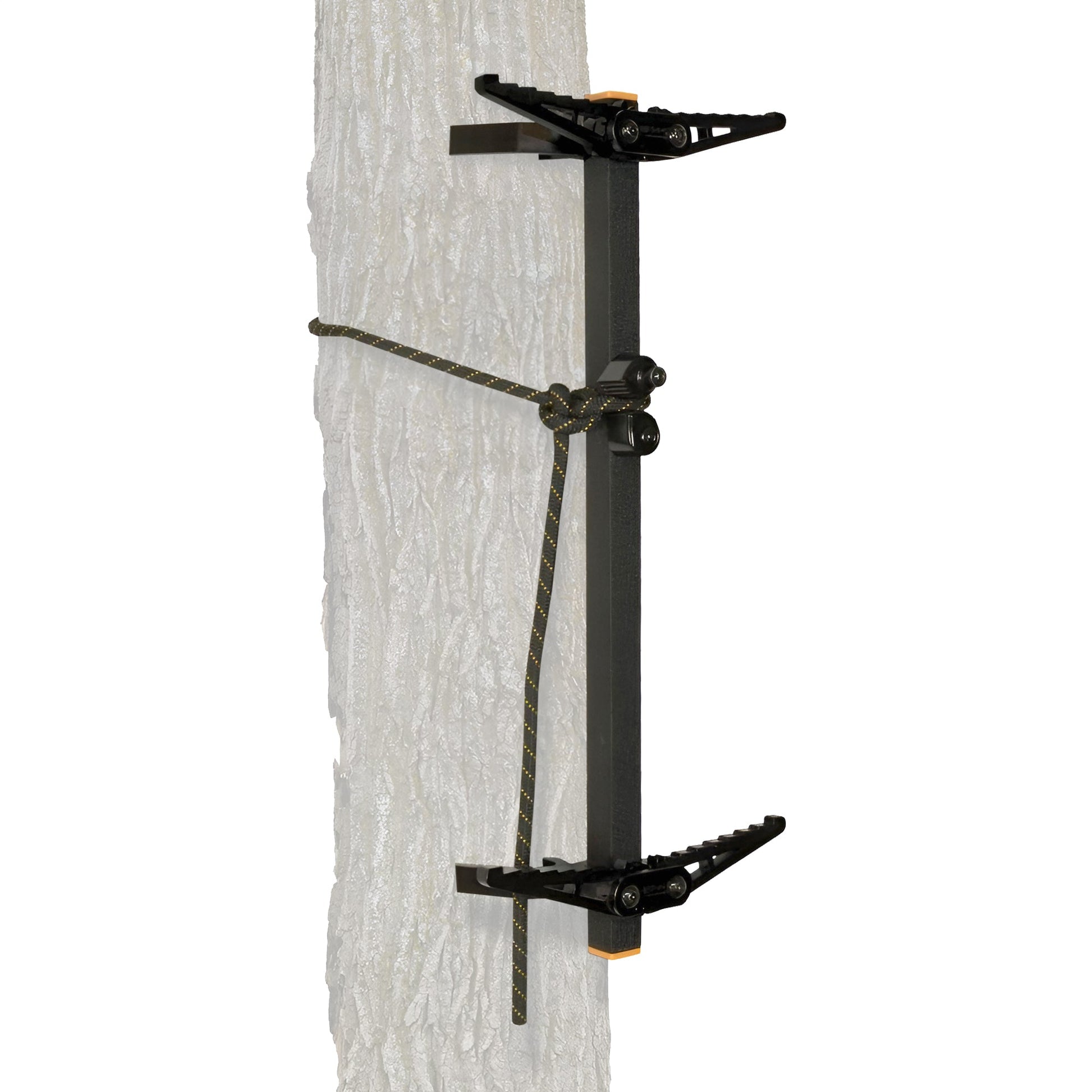 Silence, safety, and stability are essential when it comes to hunting. Accomplish all 3 with this portable tree climbing system. Equipped with safety and assembly hardware, you're guaranteed to reach your tree stand in no time using this convenient climber. Heavy-duty rigid steel construction supports up to 300 pounds.